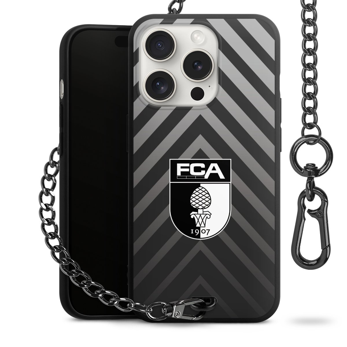• Mattschwarze Handyhülle mit Metallkette
