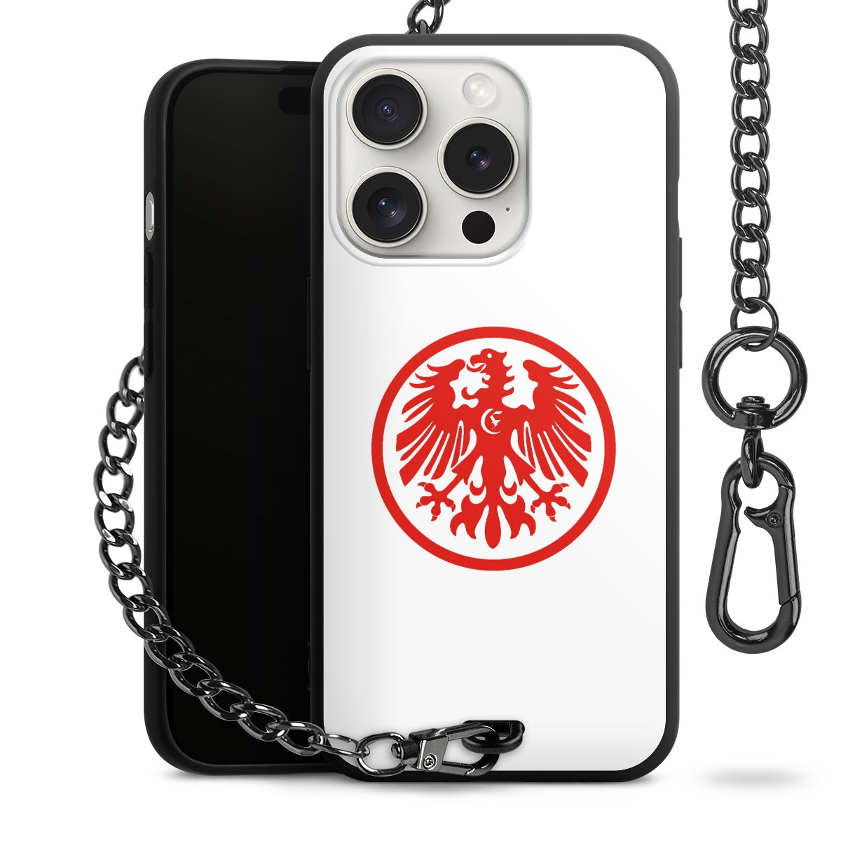 • Mattschwarze Handyhülle mit Metallkette
