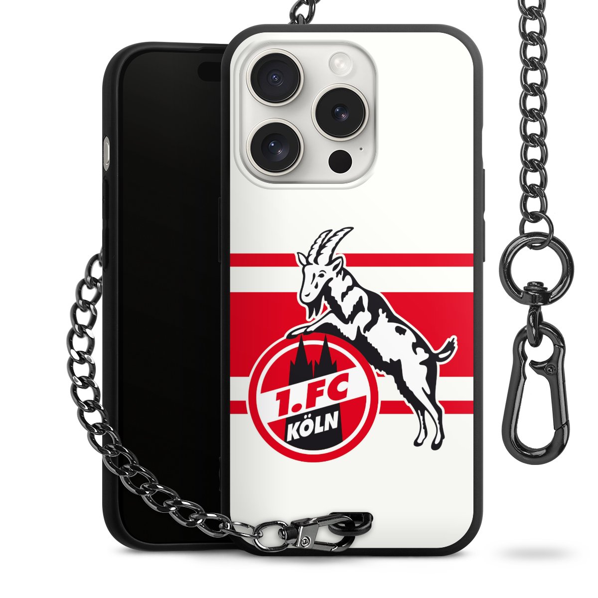 Die Handyhülle verfügt über eine mittig am unteren Rand platzierte Öse, an der die Metallkette stabil befestigt ist. Bestelle die Hülle einfach für Dein Smartphone-Modell, dann passt sie wie angegossen und Du brauchst sie bloß einmal anzudrücken. Handy in die Tasche, Karabiner an den Hosenbund – schon kann die Party starten.