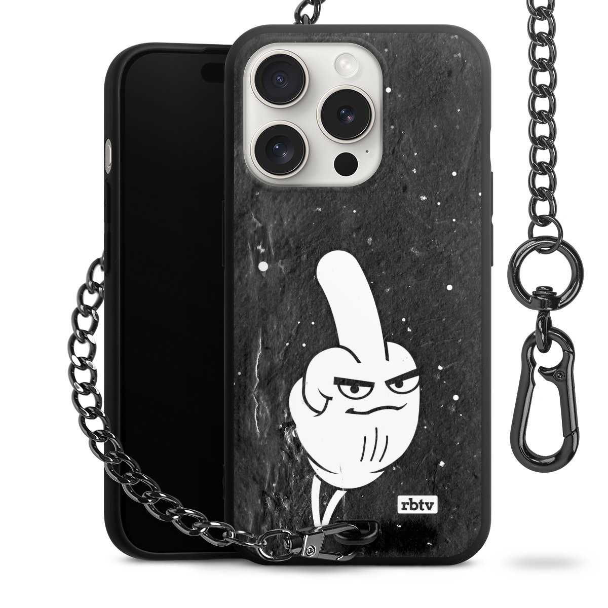 Die mattschwarze Silikon-Handyhülle besteht aus robustem TPU (thermoplastisches Polyurethan). Sie ist flexibel und schützt Dein Smartphone vor Stößen und Kratzern. Die Kette sowie der Karabinerhaken sind aus Metall in Gunmetal-Optik gefertigt. Für dieses Produkt kommen ausschließlich TÜV-geprüfte Materialien zum Einsatz.