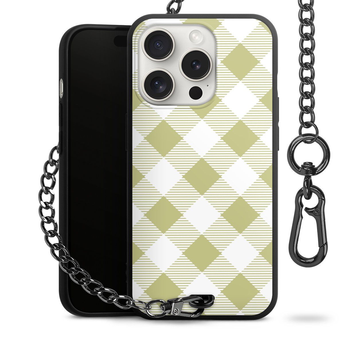Die mattschwarze Silikon-Handyhülle besteht aus robustem TPU (thermoplastisches Polyurethan). Sie ist flexibel und schützt Dein Smartphone vor Stößen und Kratzern. Die Kette sowie der Karabinerhaken sind aus Metall in Gunmetal-Optik gefertigt. Für dieses Produkt kommen ausschließlich TÜV-geprüfte Materialien zum Einsatz.
