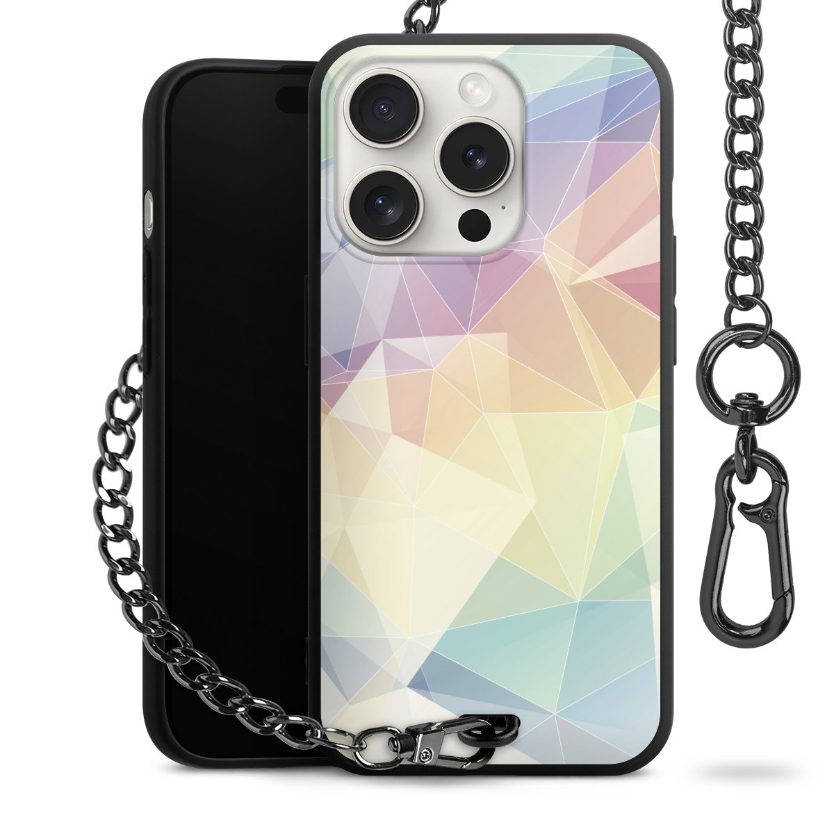 Die mattschwarze Silikon-Handyhülle besteht aus robustem TPU (thermoplastisches Polyurethan). Sie ist flexibel und schützt Dein Smartphone vor Stößen und Kratzern. Die Kette sowie der Karabinerhaken sind aus Metall in Gunmetal-Optik gefertigt. Für dieses Produkt kommen ausschließlich TÜV-geprüfte Materialien zum Einsatz.