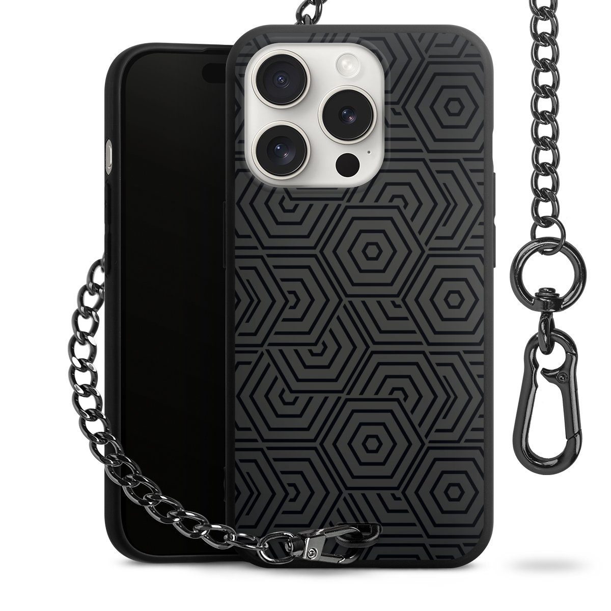 • Mattschwarze Handyhülle mit Metallkette