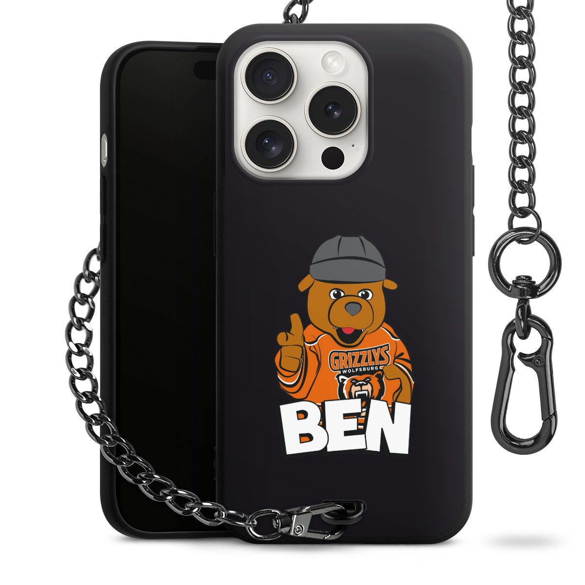 Die mattschwarze Silikon-Handyhülle besteht aus robustem TPU (thermoplastisches Polyurethan). Sie ist flexibel und schützt Dein Smartphone vor Stößen und Kratzern. Die Kette sowie der Karabinerhaken sind aus Metall in Gunmetal-Optik gefertigt. Für dieses Produkt kommen ausschließlich TÜV-geprüfte Materialien zum Einsatz.
