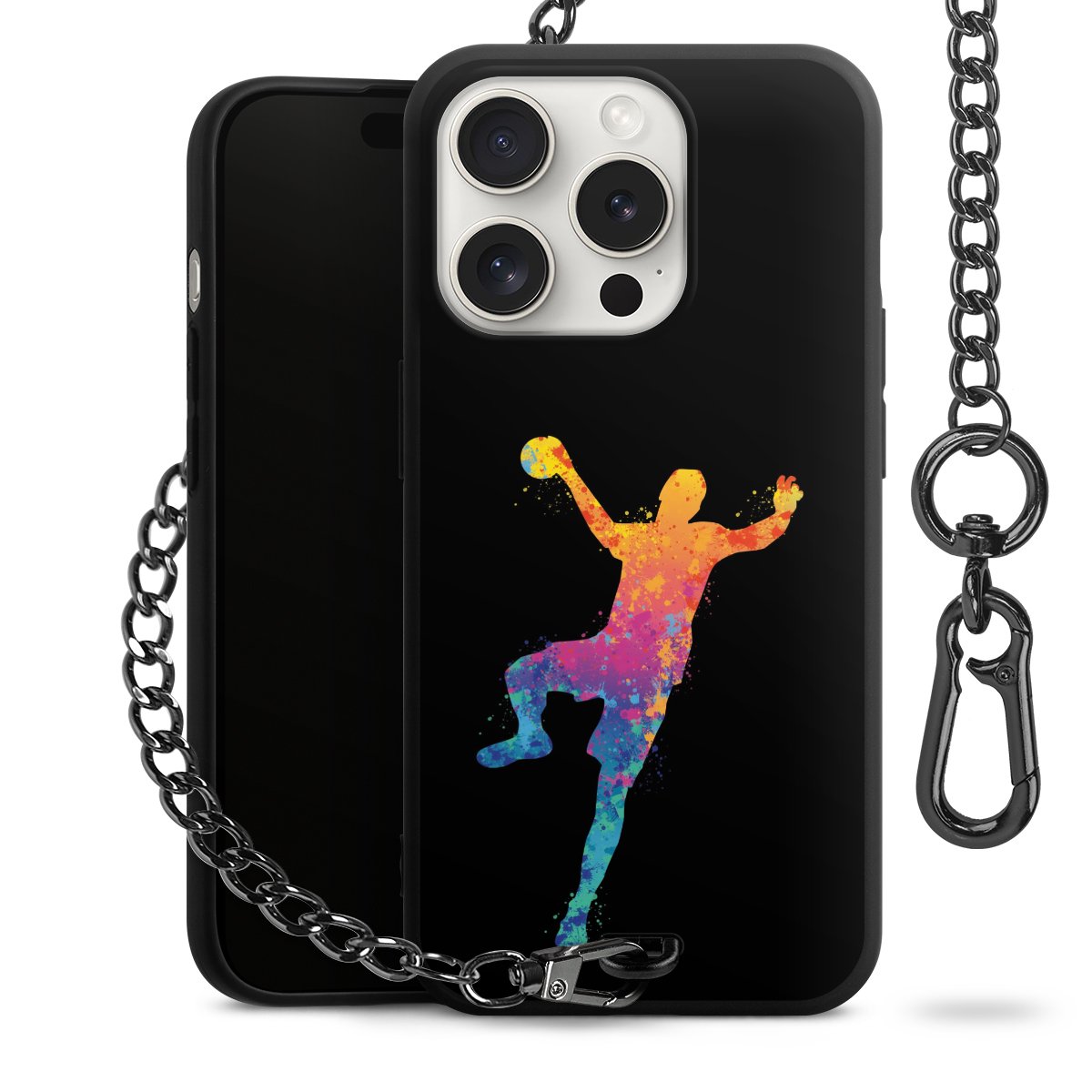 Die mattschwarze Silikon-Handyhülle besteht aus robustem TPU (thermoplastisches Polyurethan). Sie ist flexibel und schützt Dein Smartphone vor Stößen und Kratzern. Die Kette sowie der Karabinerhaken sind aus Metall in Gunmetal-Optik gefertigt. Für dieses Produkt kommen ausschließlich TÜV-geprüfte Materialien zum Einsatz.
