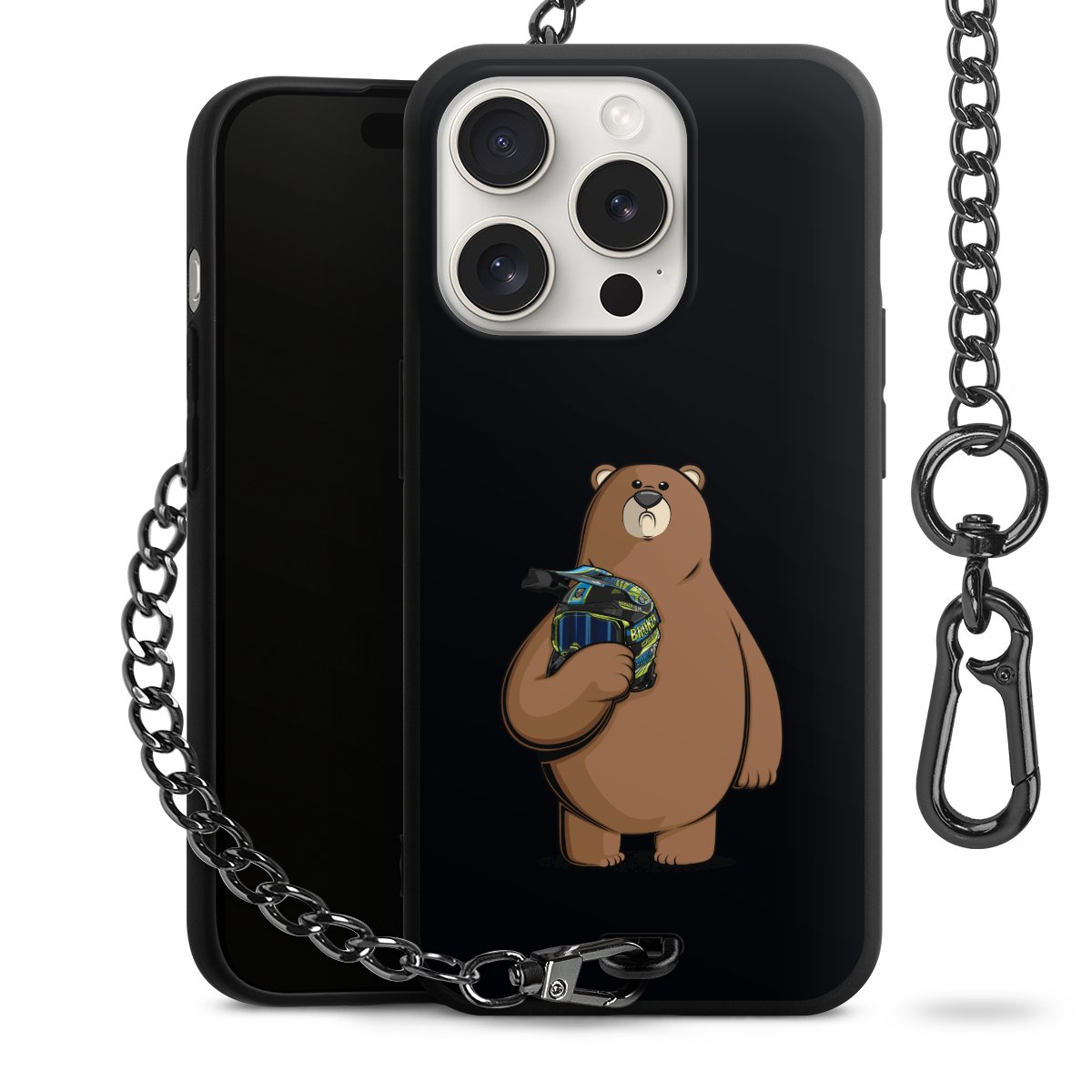 Die mattschwarze Silikon-Handyhülle besteht aus robustem TPU (thermoplastisches Polyurethan). Sie ist flexibel und schützt Dein Smartphone vor Stößen und Kratzern. Die Kette sowie der Karabinerhaken sind aus Metall in Gunmetal-Optik gefertigt. Für dieses Produkt kommen ausschließlich TÜV-geprüfte Materialien zum Einsatz.