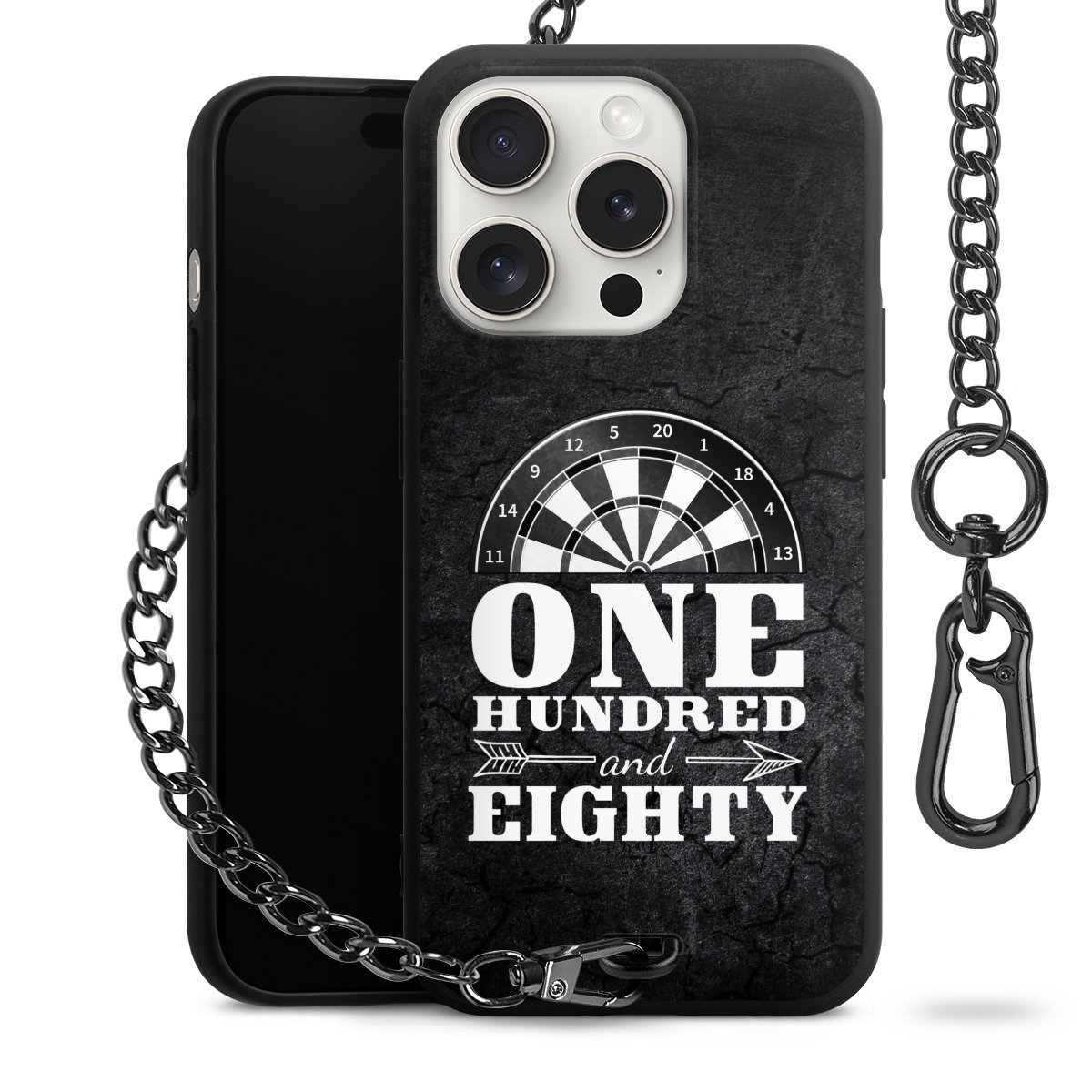 - Mattschwarze Handyhülle mit Metallkette