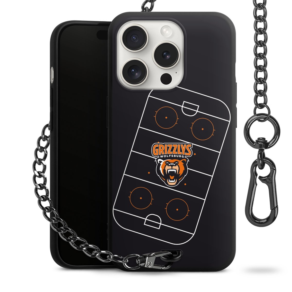 - Mattschwarze Handyhülle mit Metallkette