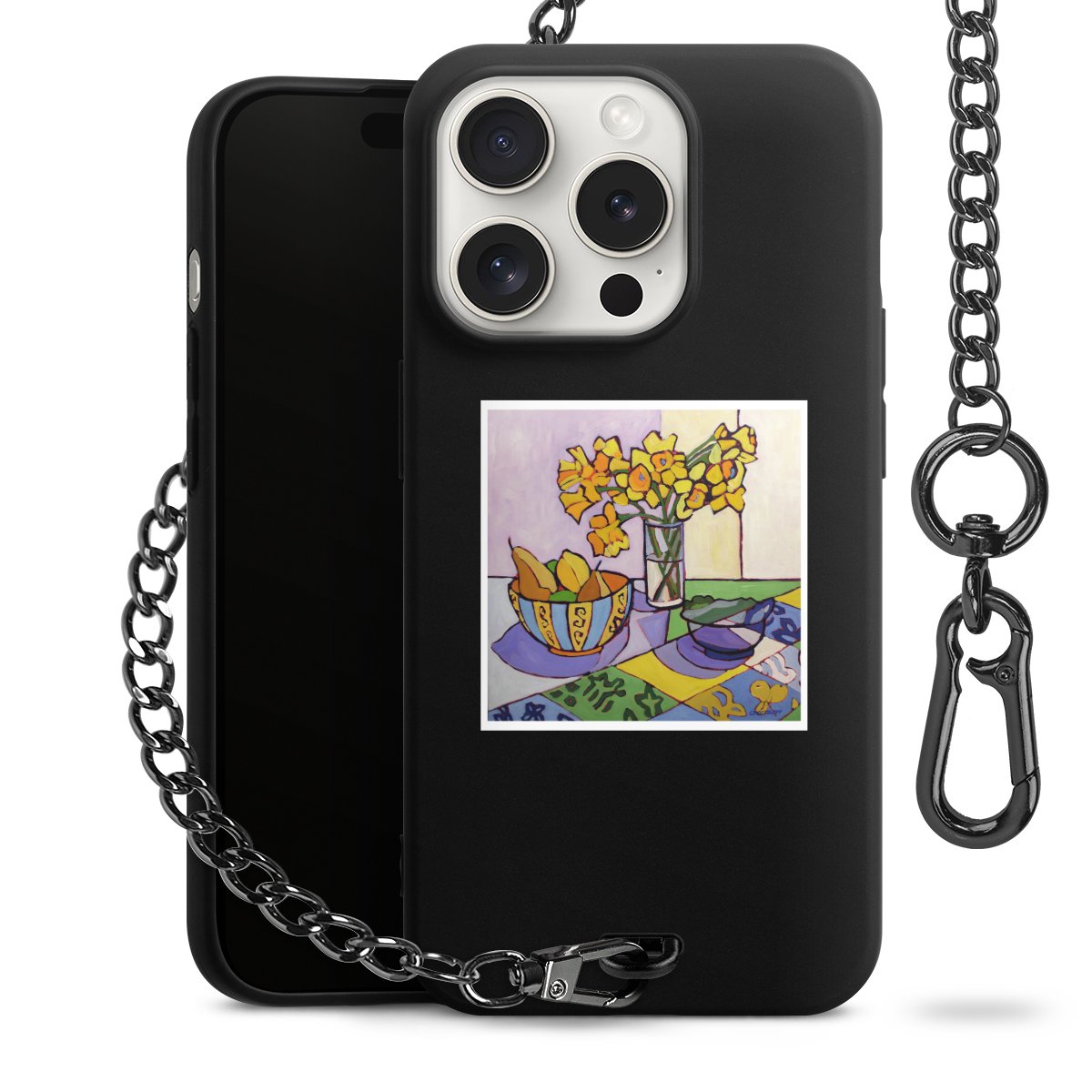 - Mattschwarze Handyhülle mit Metallkette