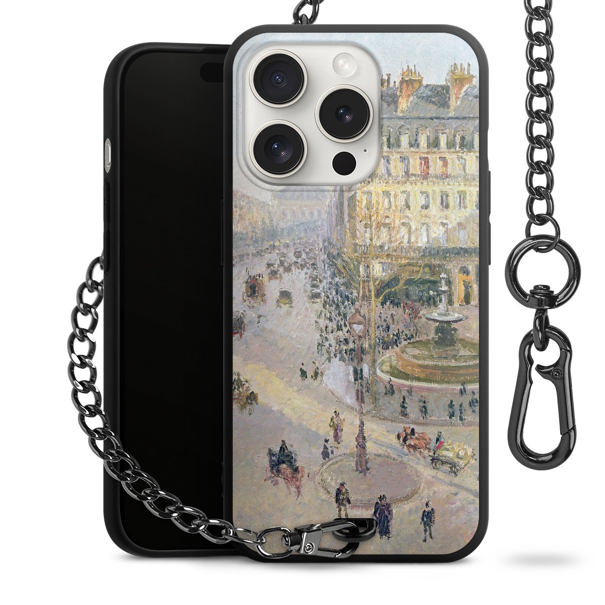 • Mattschwarze Handyhülle mit Metallkette