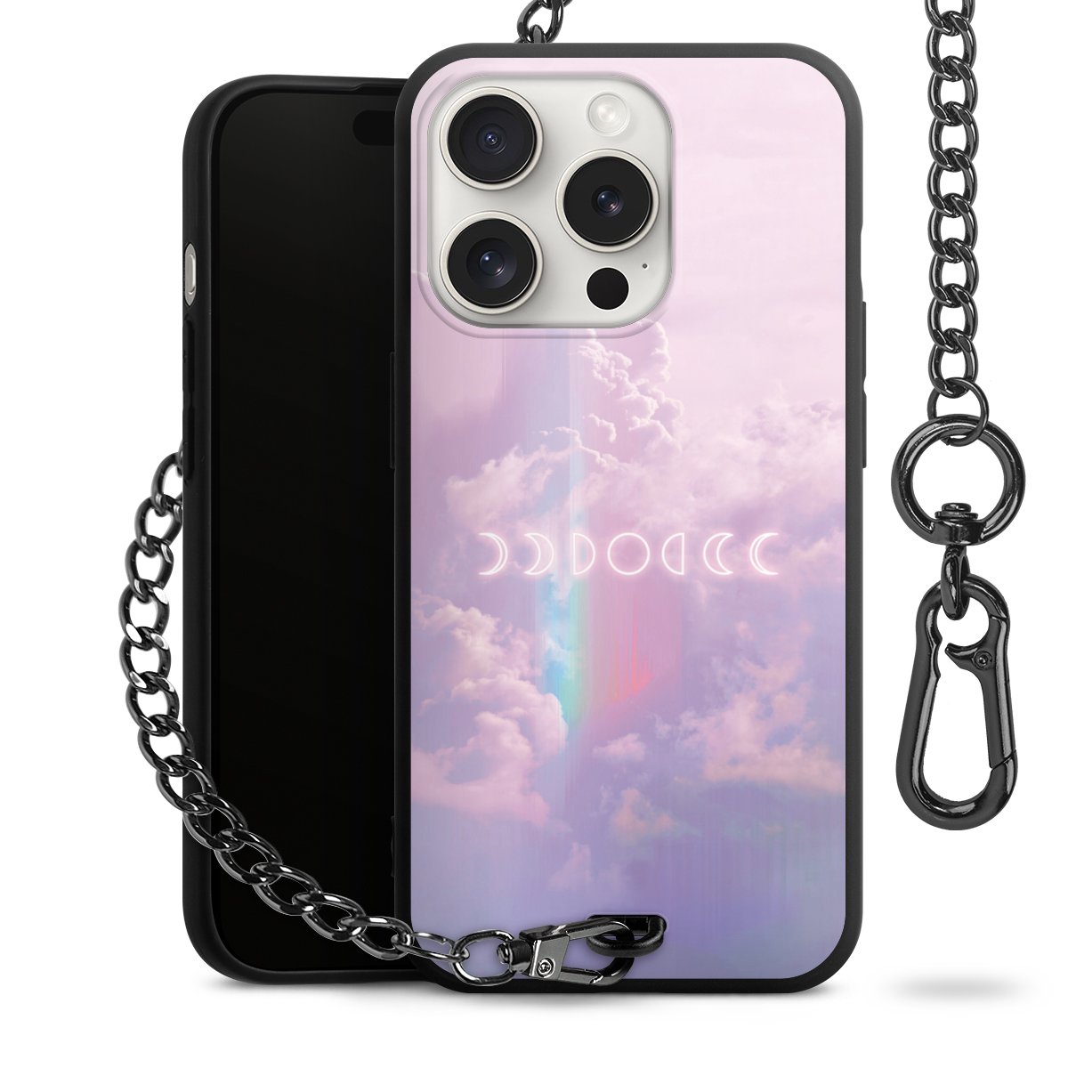 • Mattschwarze Handyhülle mit Metallkette