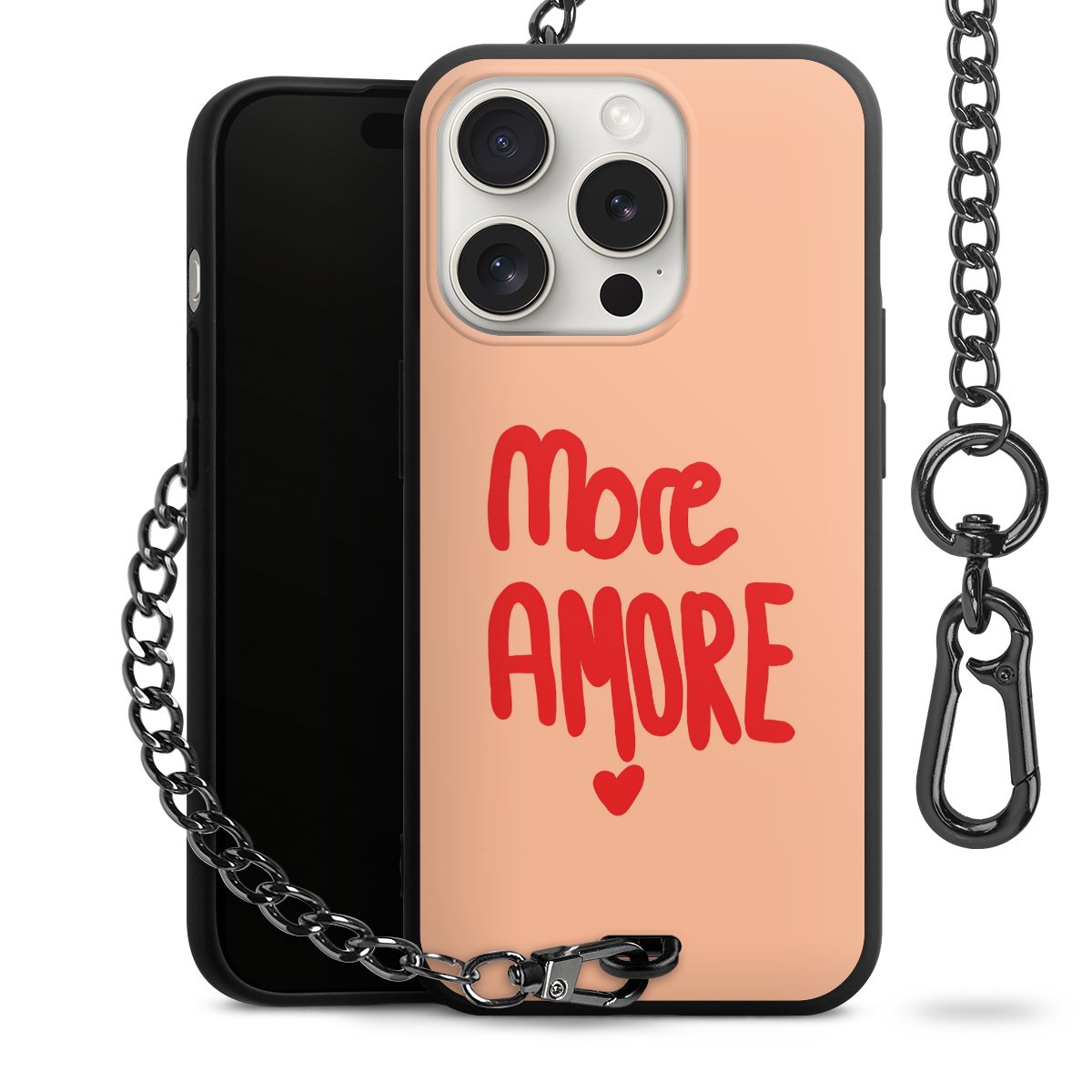 • Mattschwarze Handyhülle mit Metallkette