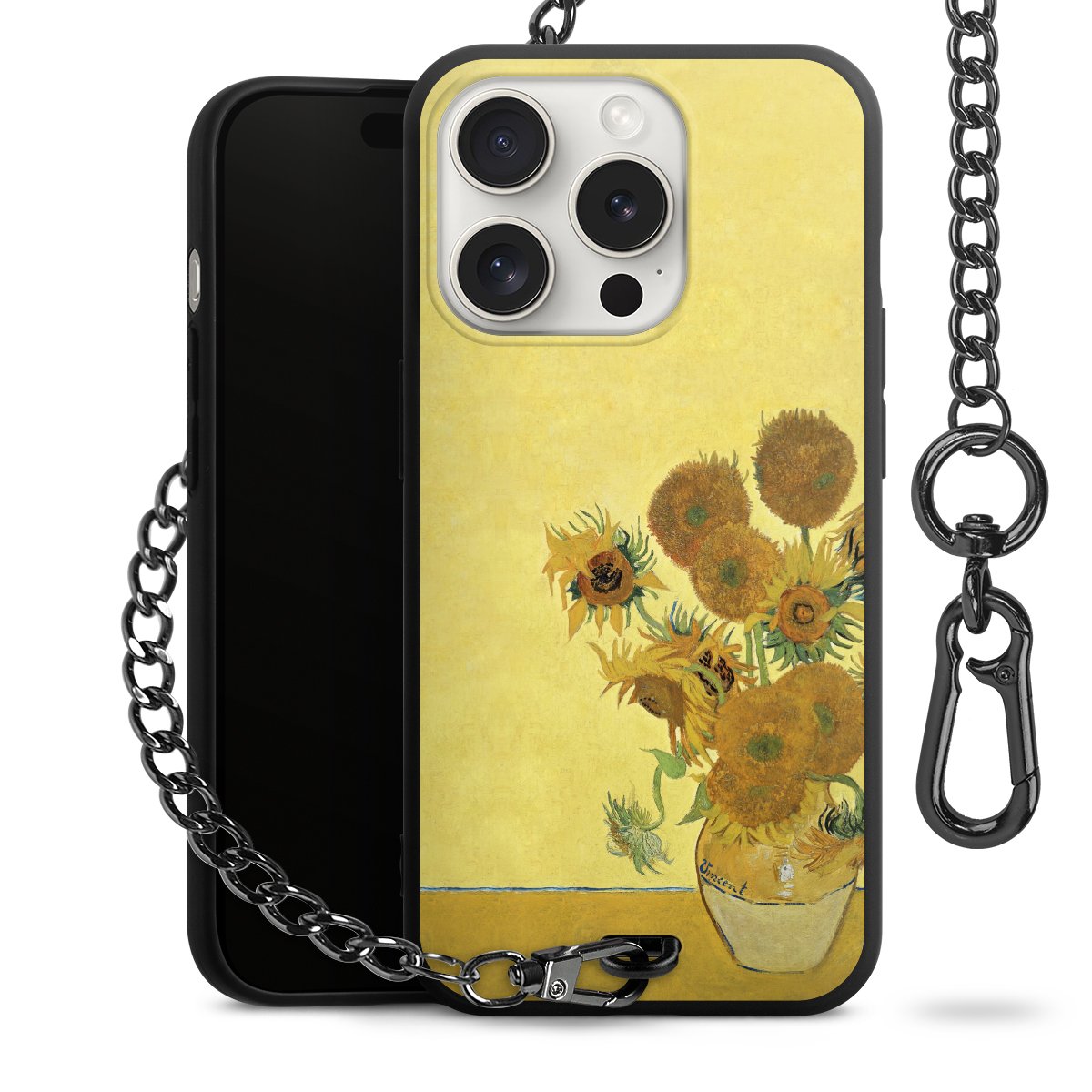 Die mattschwarze Silikon-Handyhülle besteht aus robustem TPU (thermoplastisches Polyurethan). Sie ist flexibel und schützt Dein Smartphone vor Stößen und Kratzern. Die Kette sowie der Karabinerhaken sind aus Metall in Gunmetal-Optik gefertigt. Für dieses Produkt kommen ausschließlich TÜV-geprüfte Materialien zum Einsatz.