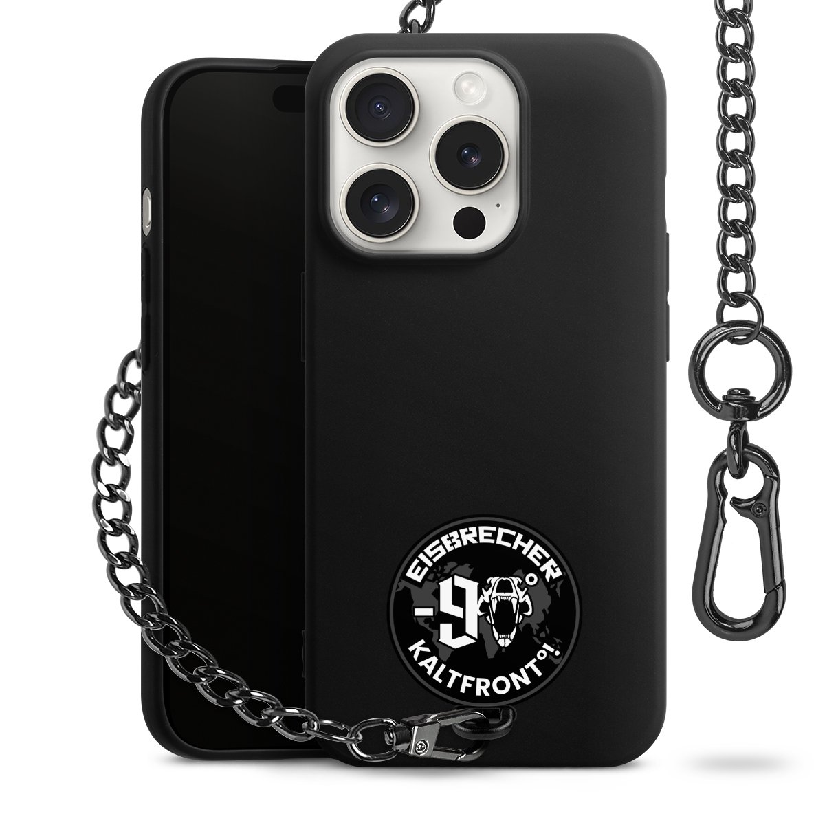 • Mattschwarze Handyhülle mit Metallkette