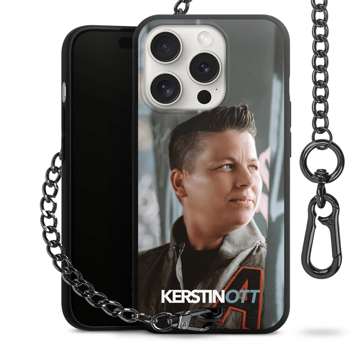 Die Handyhülle verfügt über eine mittig am unteren Rand platzierte Öse, an der die Metallkette stabil befestigt ist. Bestelle die Hülle einfach für Dein Smartphone-Modell, dann passt sie wie angegossen und Du brauchst sie bloß einmal anzudrücken. Handy in die Tasche, Karabiner an den Hosenbund – schon kann die Party starten.