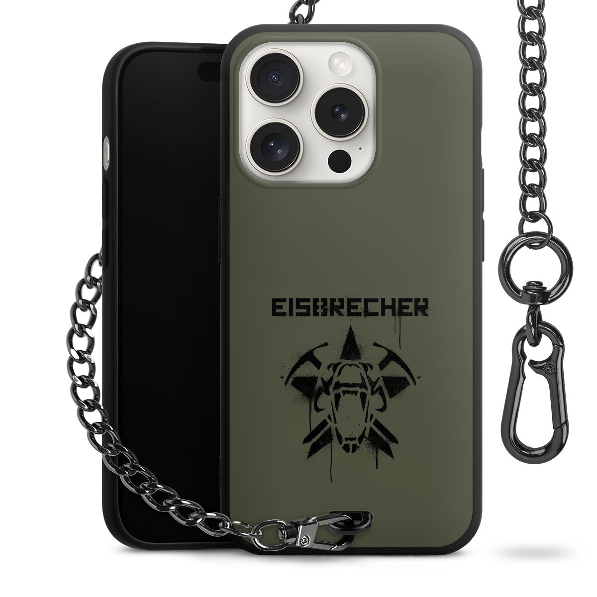 Die mattschwarze Silikon-Handyhülle besteht aus robustem TPU (thermoplastisches Polyurethan). Sie ist flexibel und schützt Dein Smartphone vor Stößen und Kratzern. Die Kette sowie der Karabinerhaken sind aus Metall in Gunmetal-Optik gefertigt. Für dieses Produkt kommen ausschließlich TÜV-geprüfte Materialien zum Einsatz.