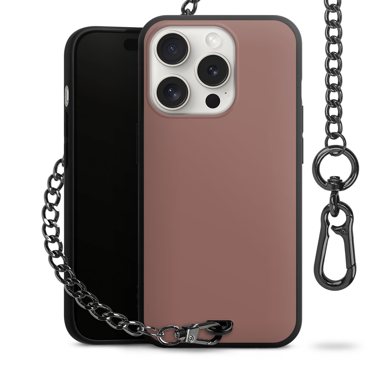 - Mattschwarze Handyhülle mit Metallkette