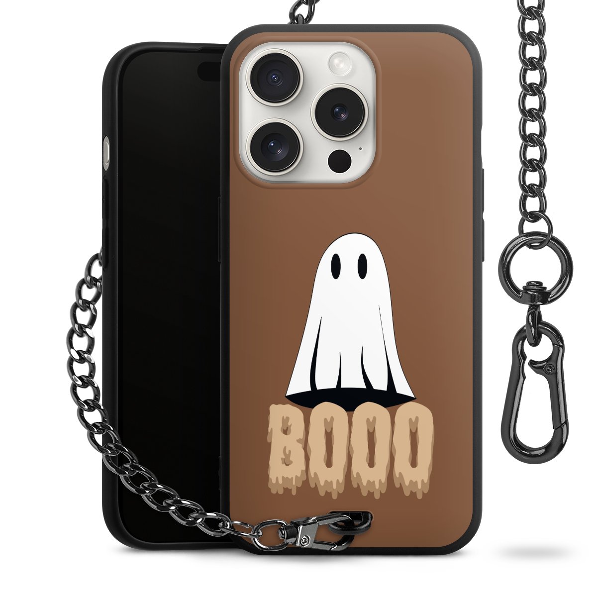 - Mattschwarze Handyhülle mit Metallkette