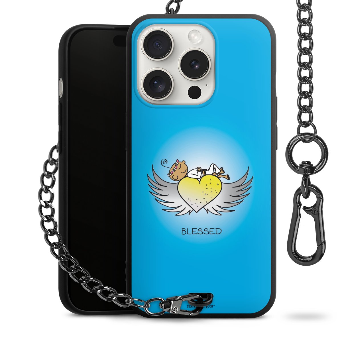 Die mattschwarze Silikon-Handyhülle besteht aus robustem TPU (thermoplastisches Polyurethan). Sie ist flexibel und schützt Dein Smartphone vor Stößen und Kratzern. Die Kette sowie der Karabinerhaken sind aus Metall in Gunmetal-Optik gefertigt. Für dieses Produkt kommen ausschließlich TÜV-geprüfte Materialien zum Einsatz.