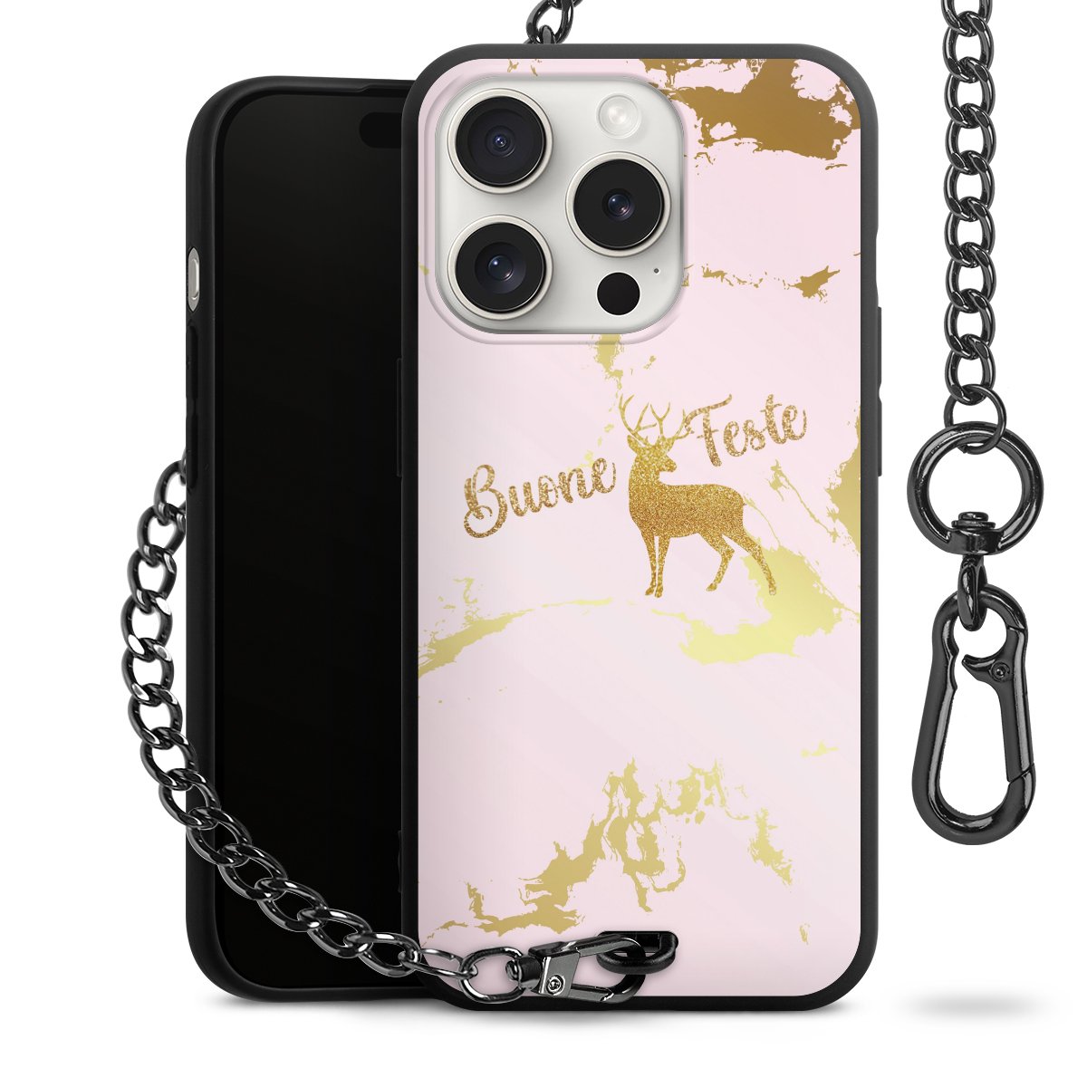 • Mattschwarze Handyhülle mit Metallkette
