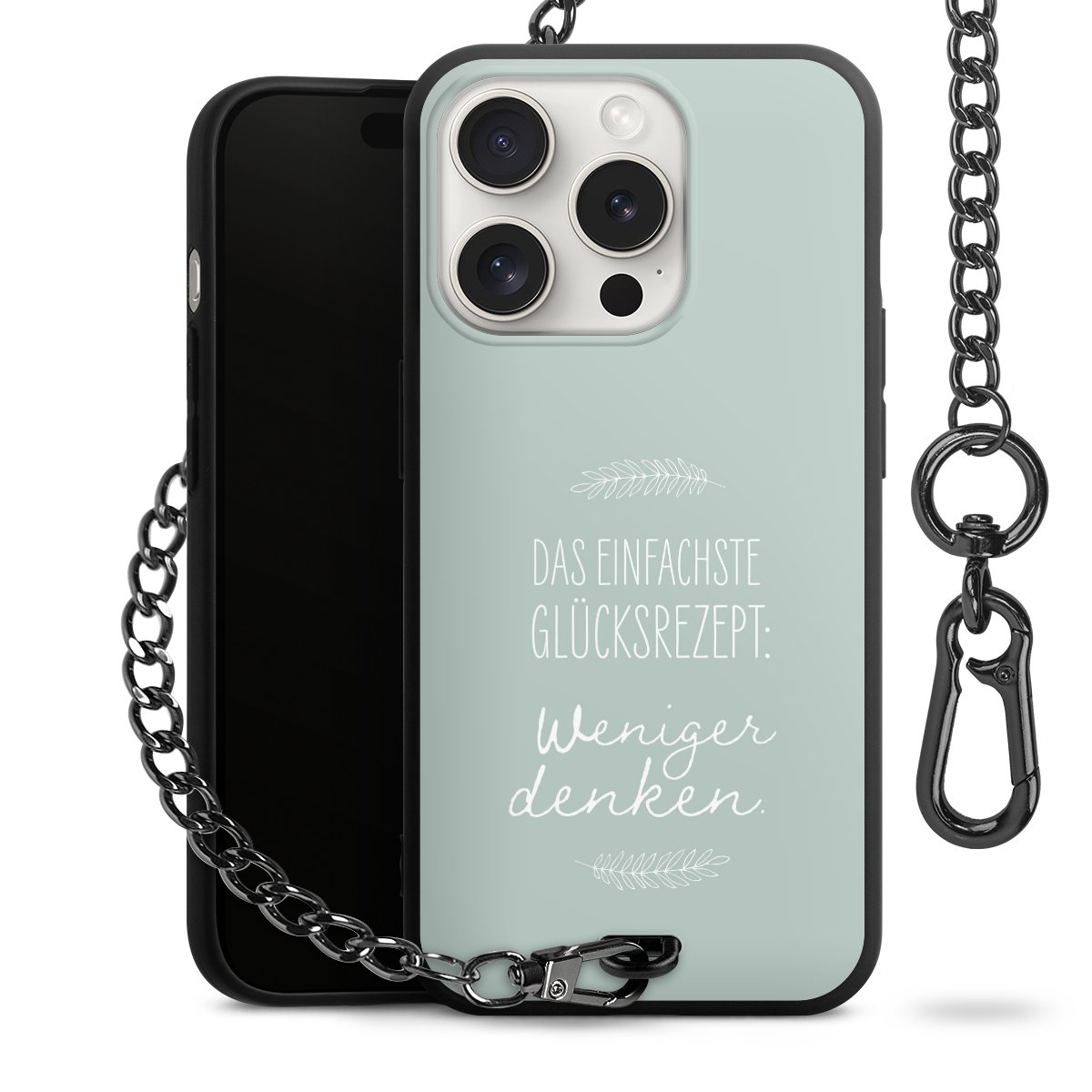 Die mattschwarze Silikon-Handyhülle besteht aus robustem TPU (thermoplastisches Polyurethan). Sie ist flexibel und schützt Dein Smartphone vor Stößen und Kratzern. Die Kette sowie der Karabinerhaken sind aus Metall in Gunmetal-Optik gefertigt. Für dieses Produkt kommen ausschließlich TÜV-geprüfte Materialien zum Einsatz.
