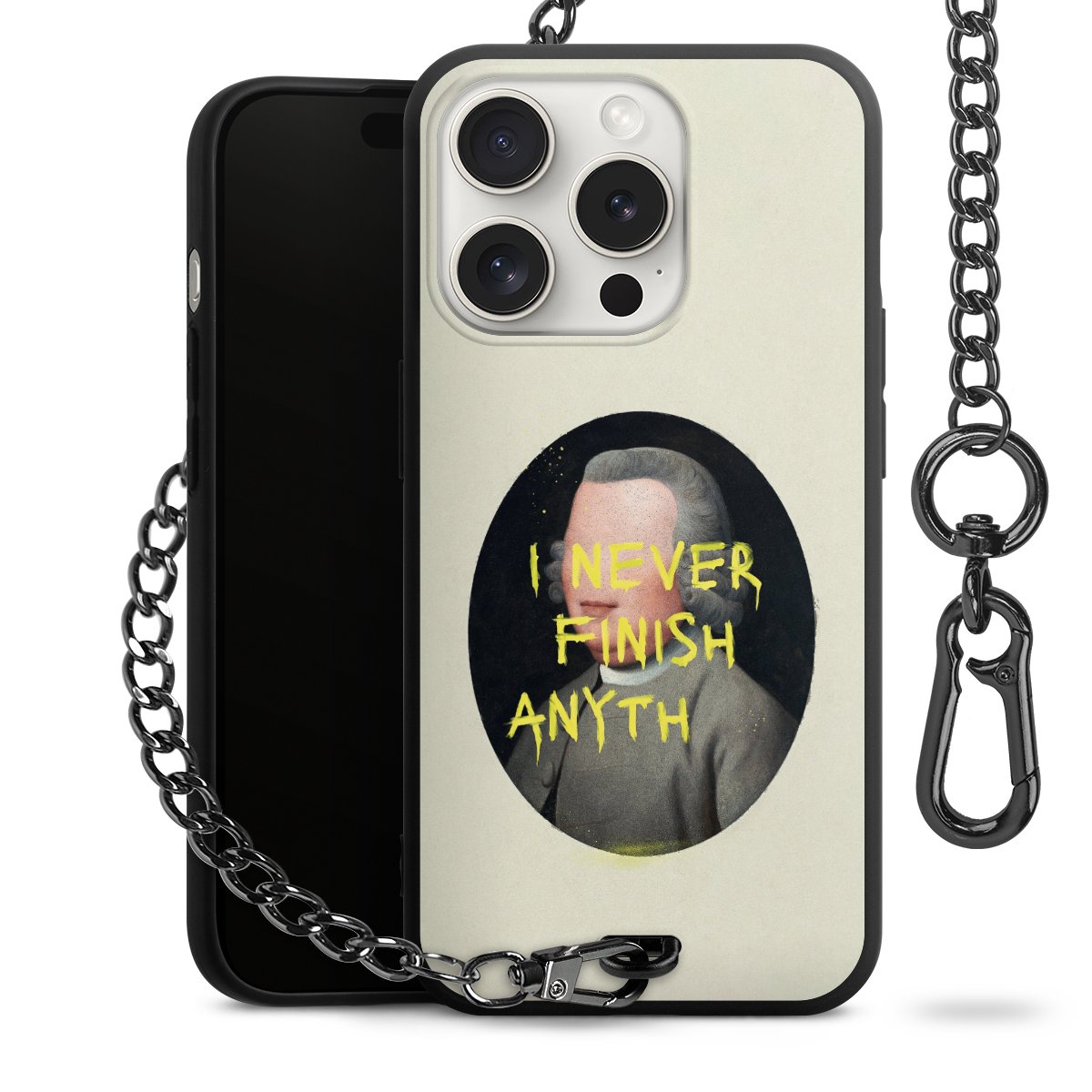 • Mattschwarze Handyhülle mit Metallkette