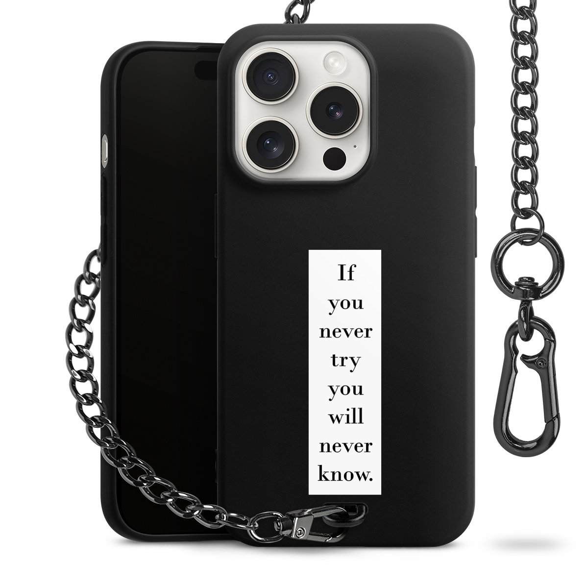 - Mattschwarze Handyhülle mit Metallkette