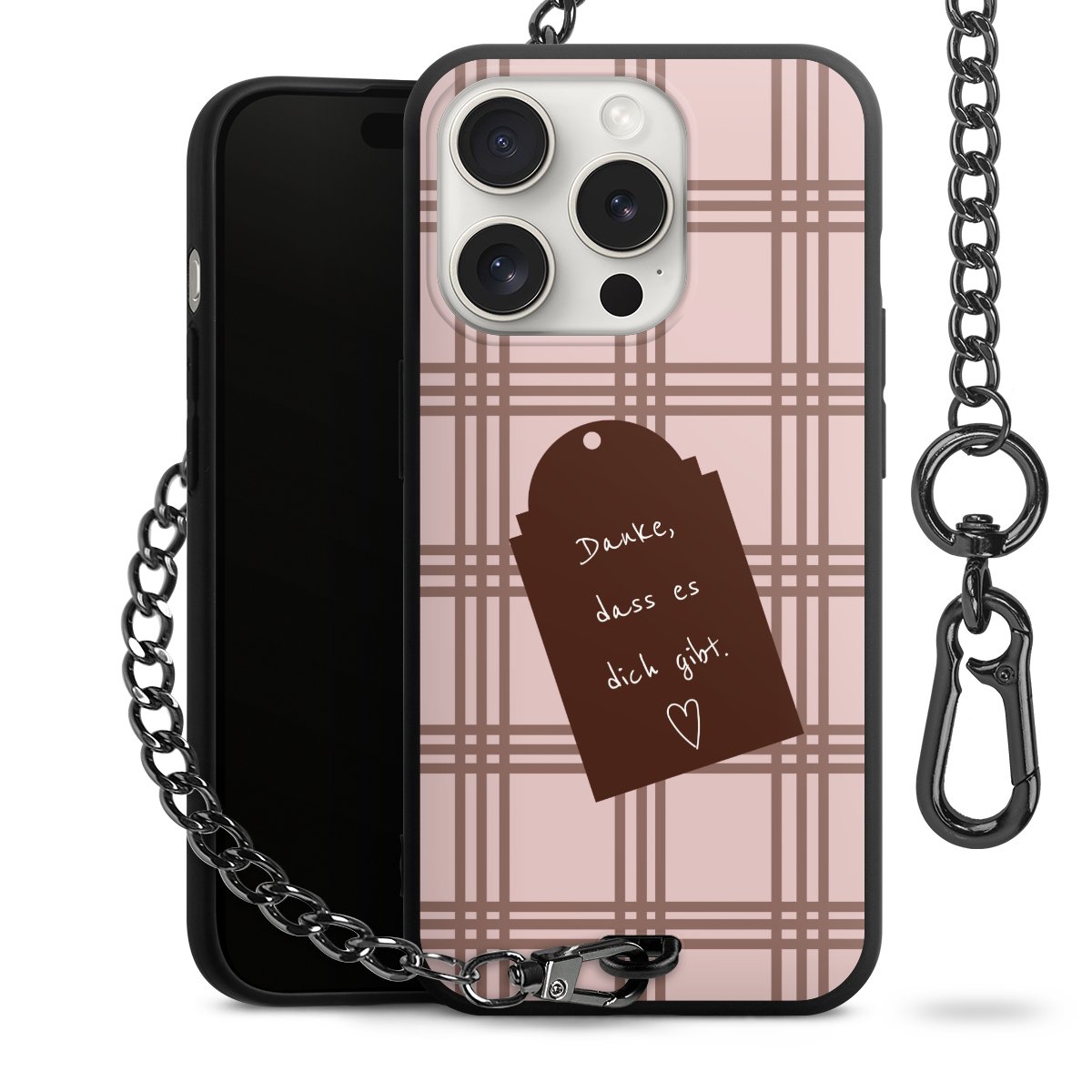 • Mattschwarze Handyhülle mit Metallkette