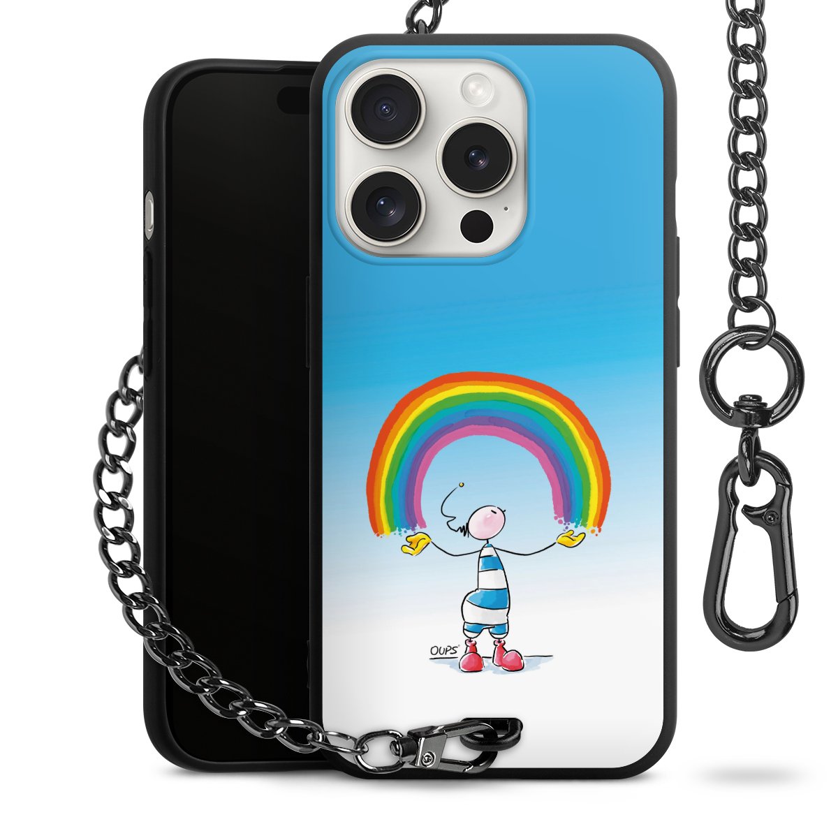 Die mattschwarze Silikon-Handyhülle besteht aus robustem TPU (thermoplastisches Polyurethan). Sie ist flexibel und schützt Dein Smartphone vor Stößen und Kratzern. Die Kette sowie der Karabinerhaken sind aus Metall in Gunmetal-Optik gefertigt. Für dieses Produkt kommen ausschließlich TÜV-geprüfte Materialien zum Einsatz.