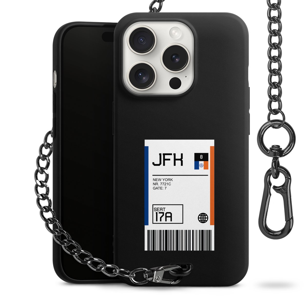 - Mattschwarze Handyhülle mit Metallkette