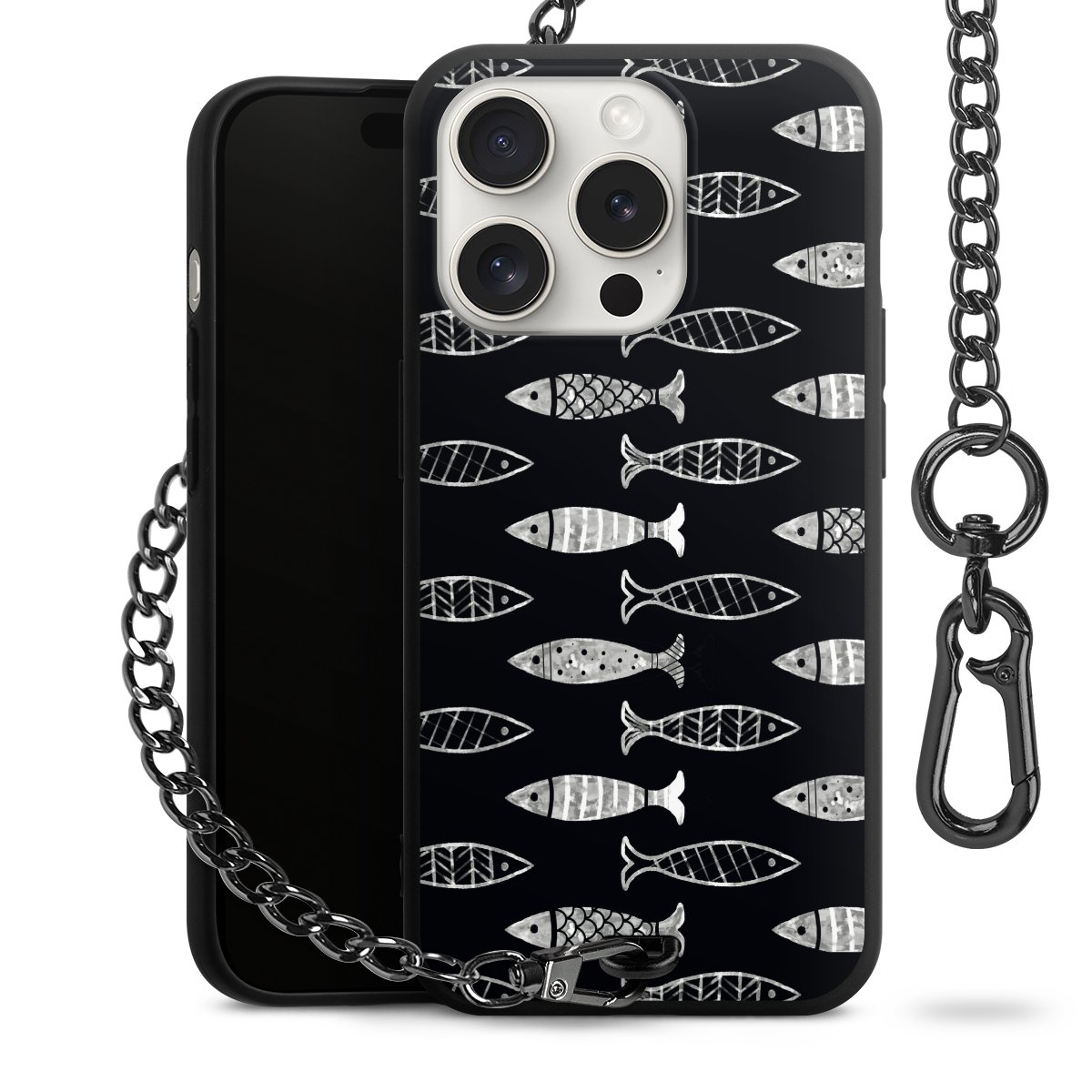 • Mattschwarze Handyhülle mit Metallkette