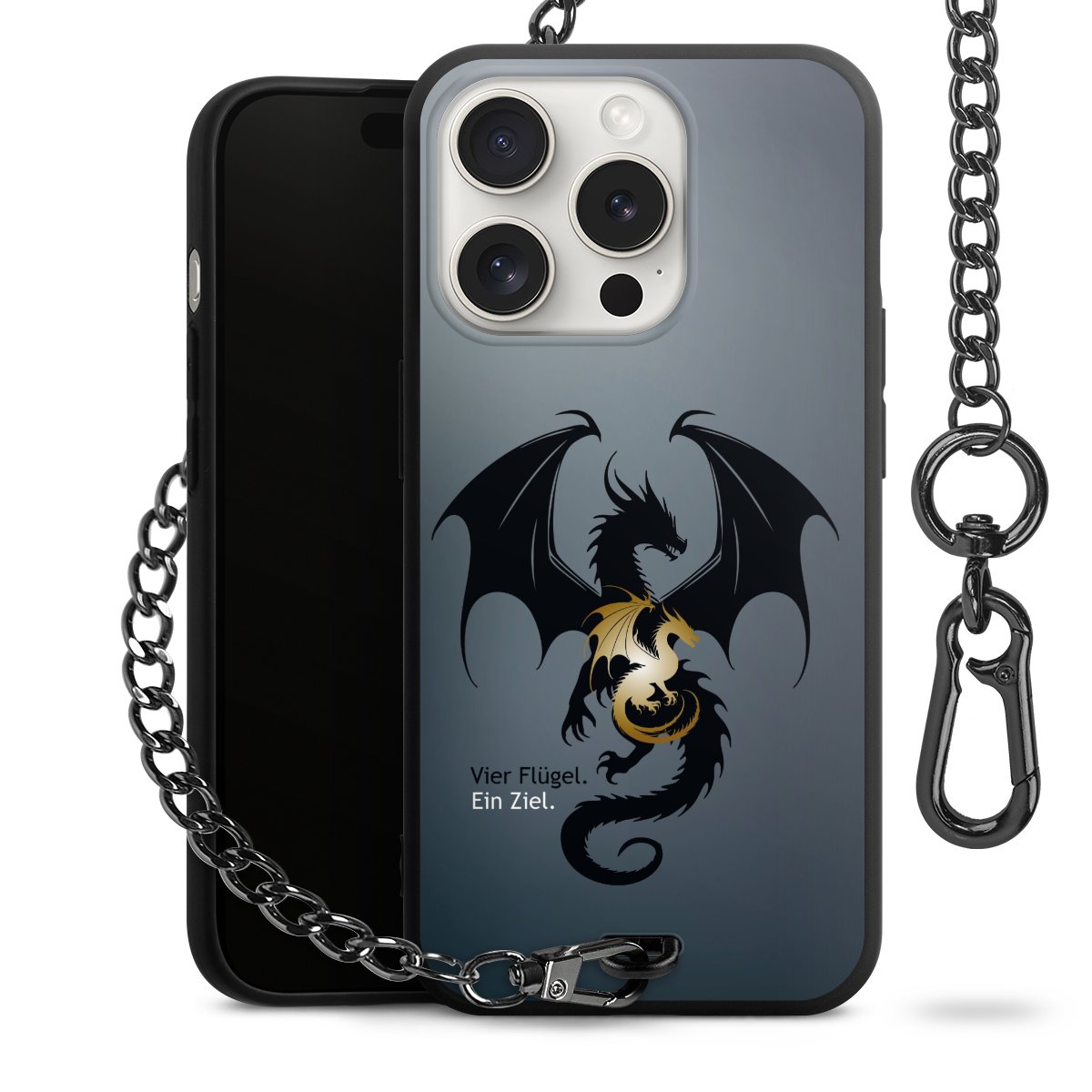 - Mattschwarze Handyhülle mit Metallkette
