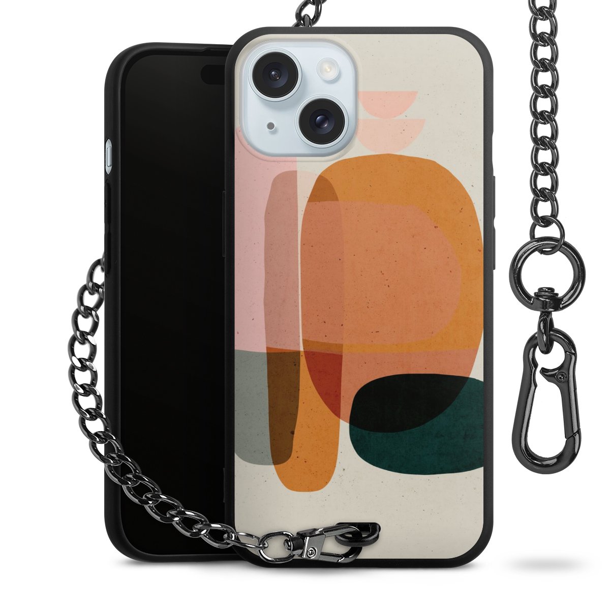 • Mattschwarze Handyhülle mit Metallkette