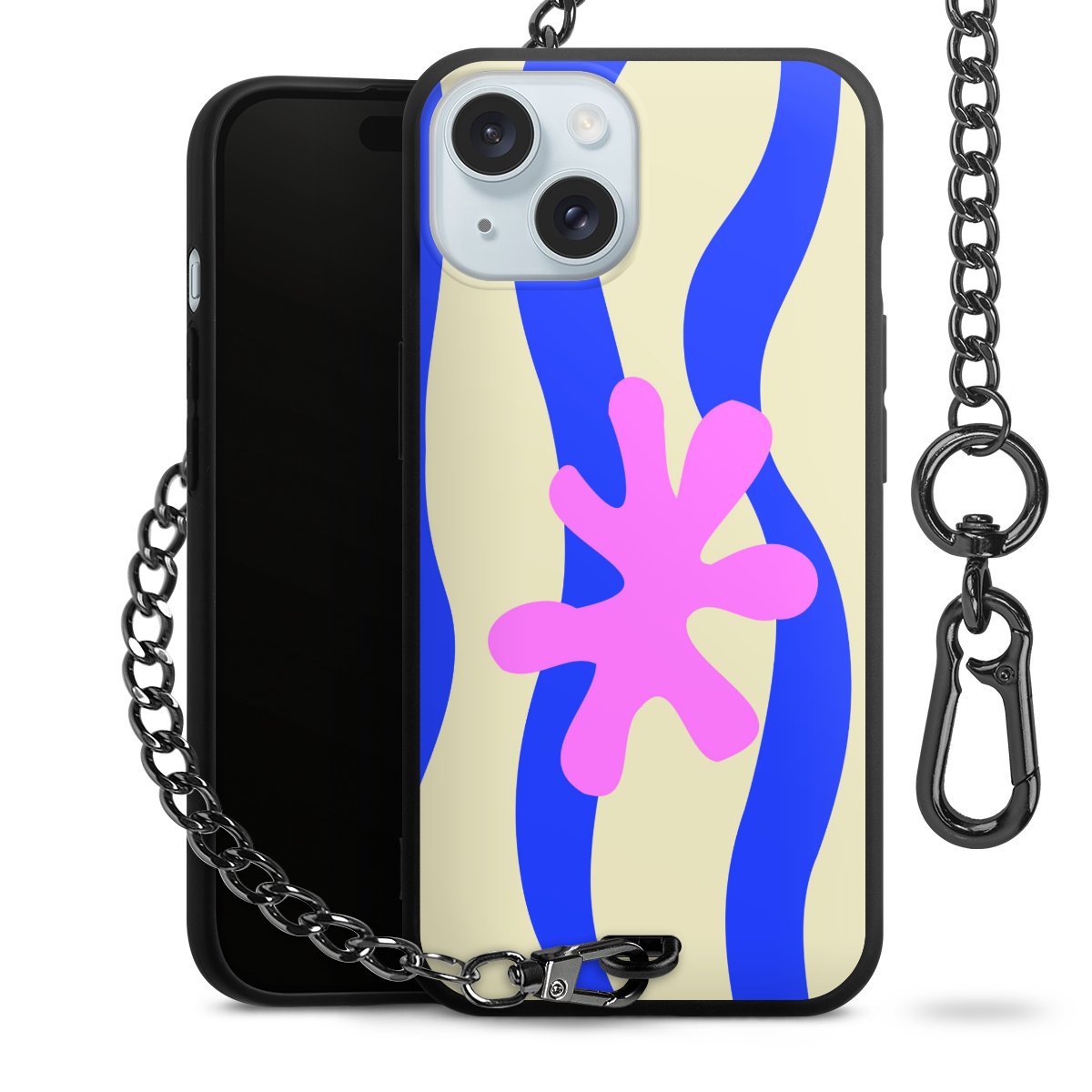 - Mattschwarze Handyhülle mit Metallkette