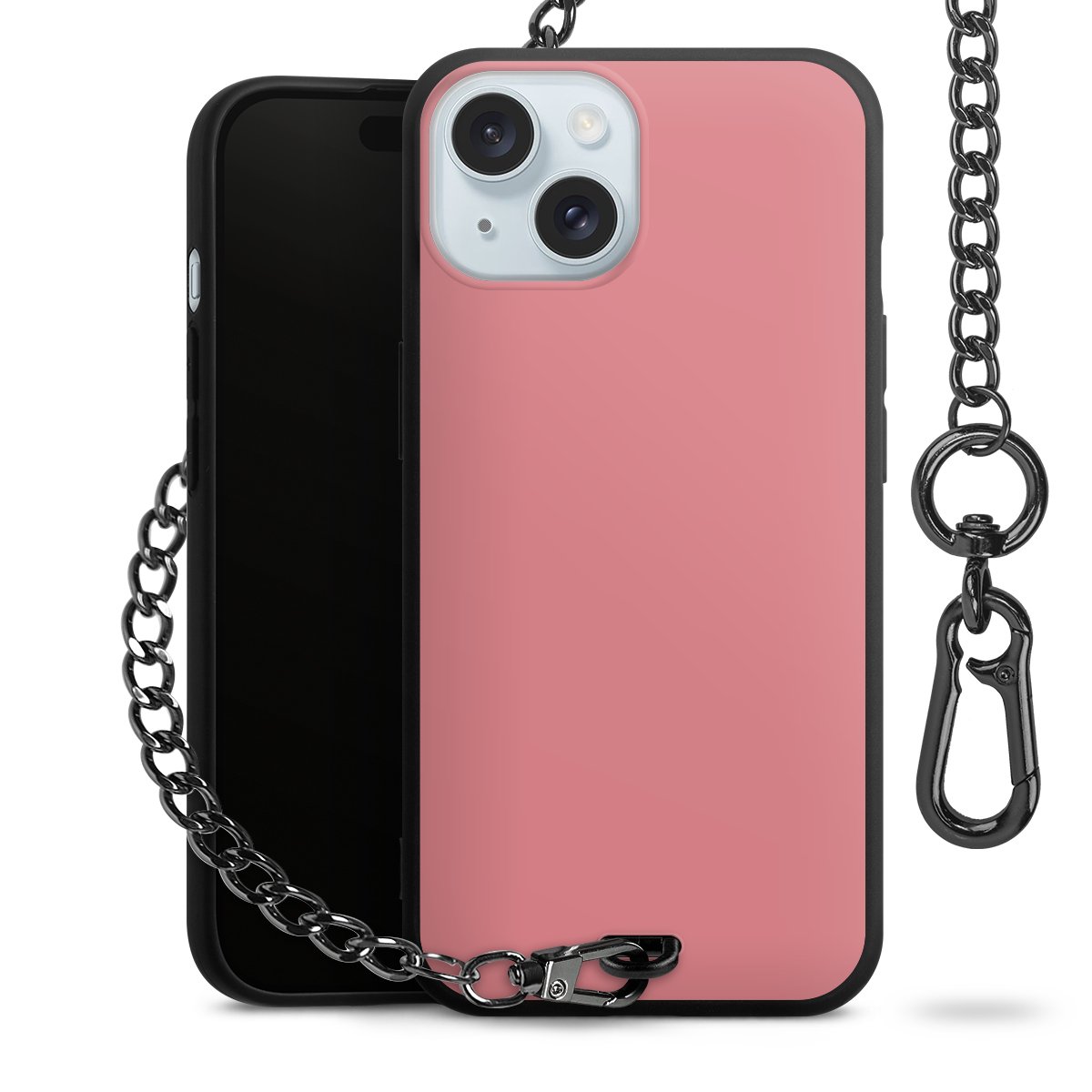 - Mattschwarze Handyhülle mit Metallkette
