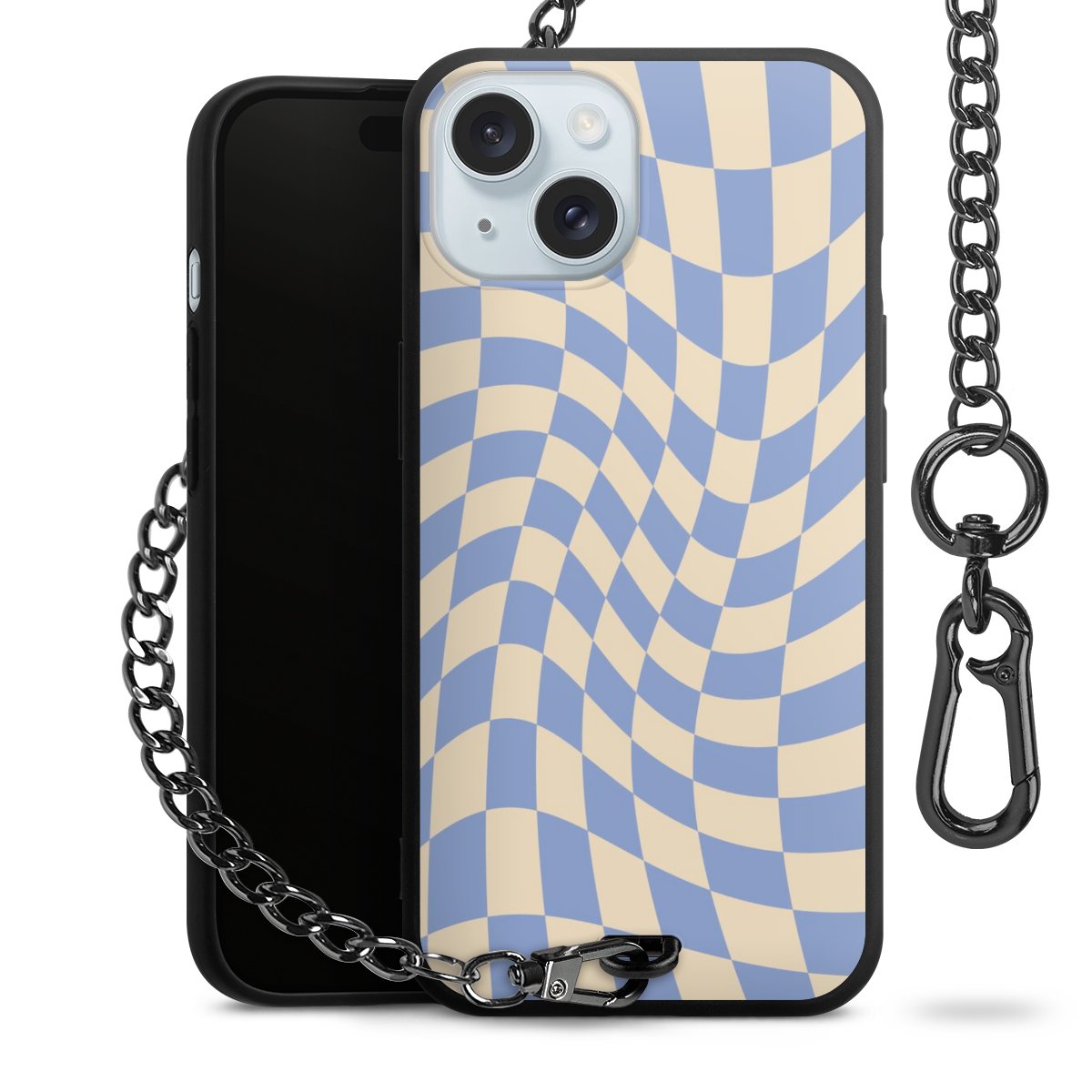- Mattschwarze Handyhülle mit Metallkette