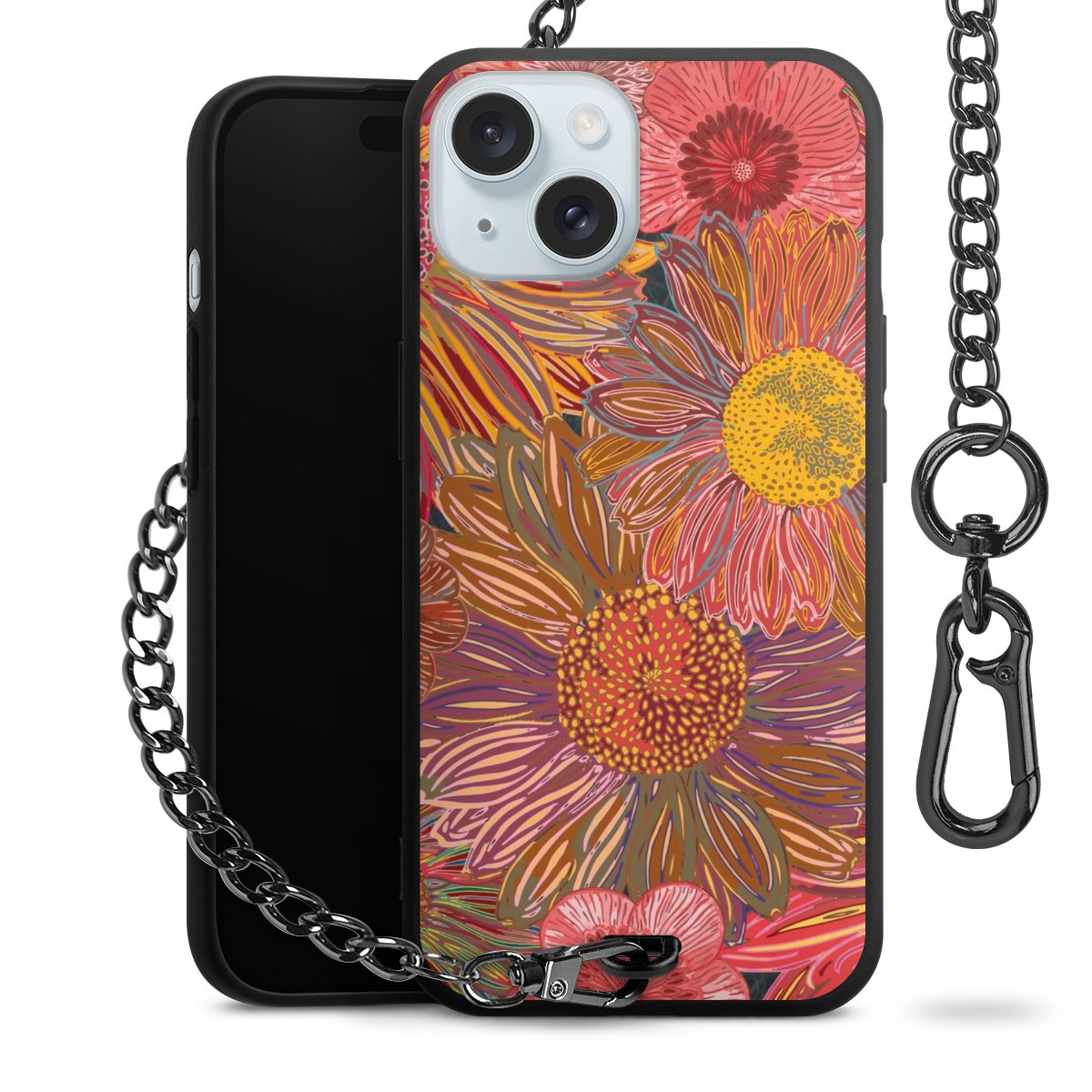 • Mattschwarze Handyhülle mit Metallkette