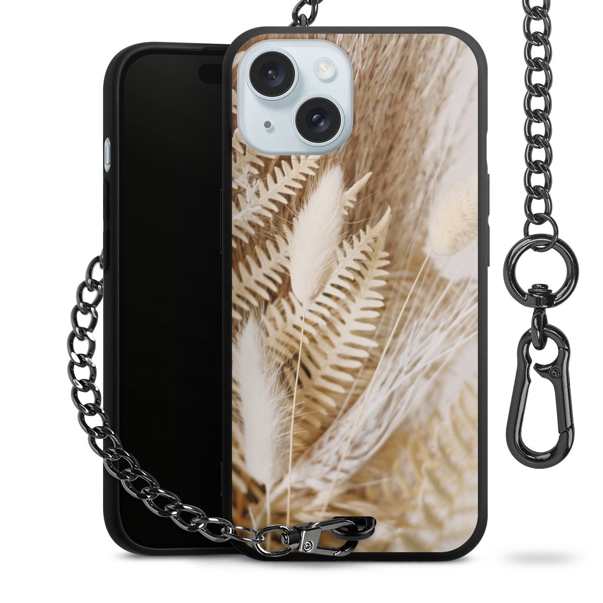 - Mattschwarze Handyhülle mit Metallkette