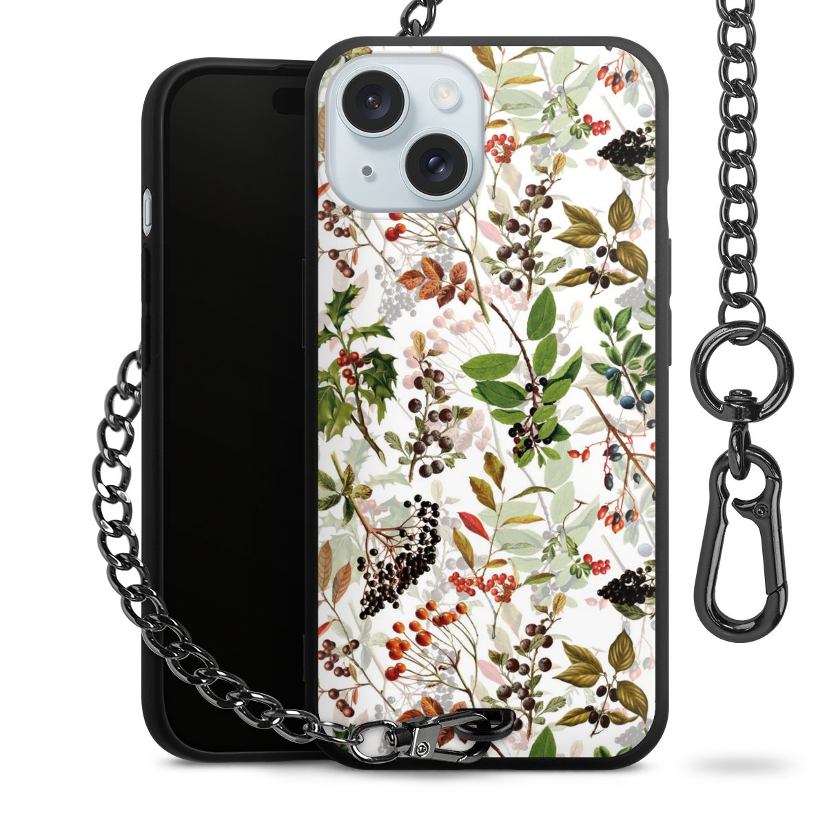 • Mattschwarze Handyhülle mit Metallkette