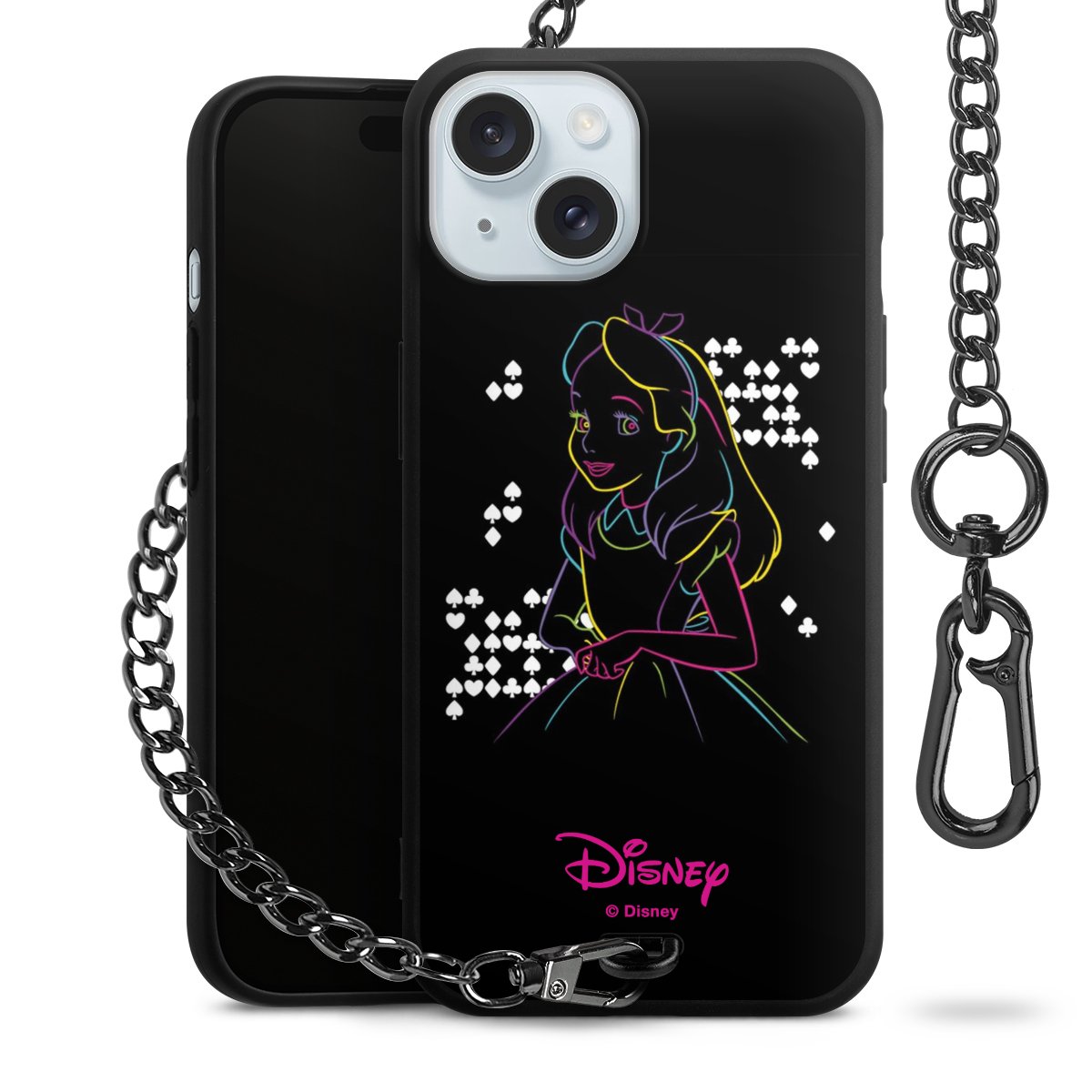 Die Handyhülle verfügt über eine mittig am unteren Rand platzierte Öse, an der die Metallkette stabil befestigt ist. Bestelle die Hülle einfach für Dein Smartphone-Modell, dann passt sie wie angegossen und Du brauchst sie bloß einmal anzudrücken. Handy in die Tasche, Karabiner an den Hosenbund – schon kann die Party starten.