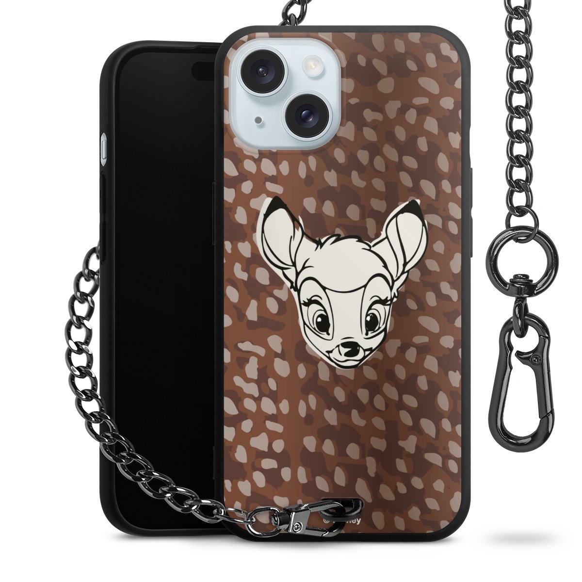 Die Handyhülle verfügt über eine mittig am unteren Rand platzierte Öse, an der die Metallkette stabil befestigt ist. Bestelle die Hülle einfach für Dein Smartphone-Modell, dann passt sie wie angegossen und Du brauchst sie bloß einmal anzudrücken. Handy in die Tasche, Karabiner an den Hosenbund – schon kann die Party starten.