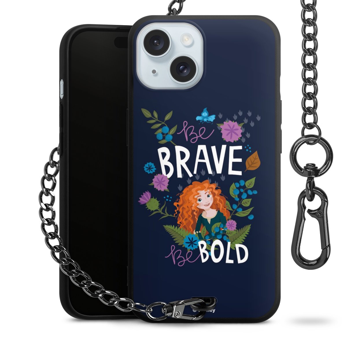 - Mattschwarze Handyhülle mit Metallkette
