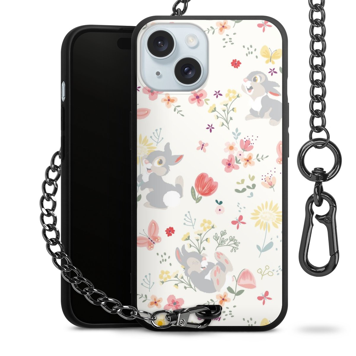 Die Handyhülle verfügt über eine mittig am unteren Rand platzierte Öse, an der die Metallkette stabil befestigt ist. Bestelle die Hülle einfach für Dein Smartphone-Modell, dann passt sie wie angegossen und Du brauchst sie bloß einmal anzudrücken. Handy in die Tasche, Karabiner an den Hosenbund – schon kann die Party starten.