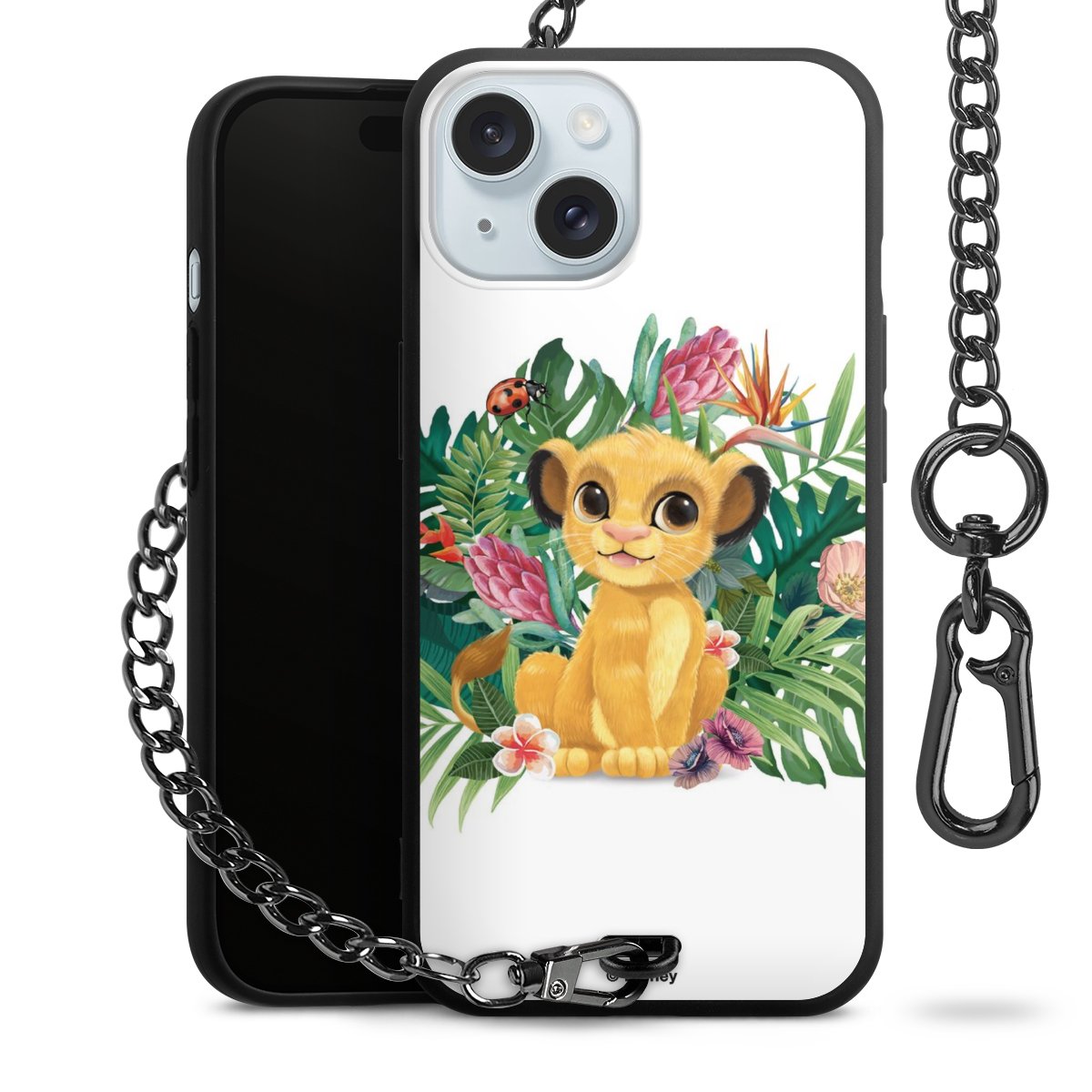 Die Handyhülle verfügt über eine mittig am unteren Rand platzierte Öse, an der die Metallkette stabil befestigt ist. Bestelle die Hülle einfach für Dein Smartphone-Modell, dann passt sie wie angegossen und Du brauchst sie bloß einmal anzudrücken. Handy in die Tasche, Karabiner an den Hosenbund – schon kann die Party starten.