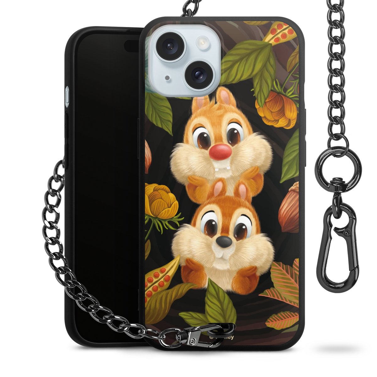 • Mattschwarze Handyhülle mit Metallkette