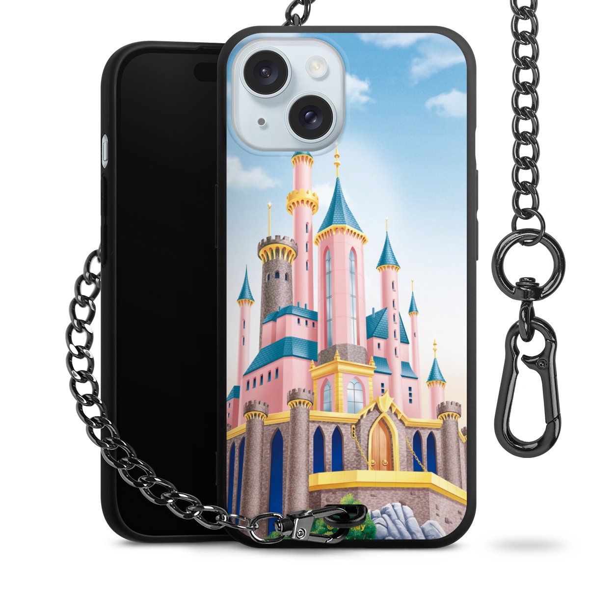 • Mattschwarze Handyhülle mit Metallkette