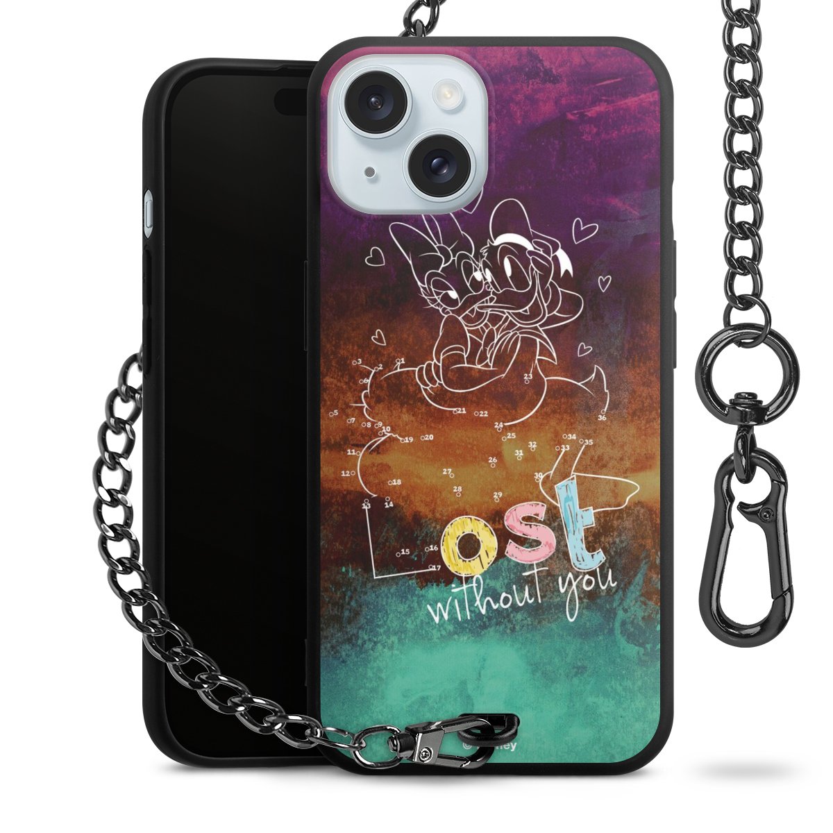Die Handyhülle verfügt über eine mittig am unteren Rand platzierte Öse, an der die Metallkette stabil befestigt ist. Bestelle die Hülle einfach für Dein Smartphone-Modell, dann passt sie wie angegossen und Du brauchst sie bloß einmal anzudrücken. Handy in die Tasche, Karabiner an den Hosenbund – schon kann die Party starten.