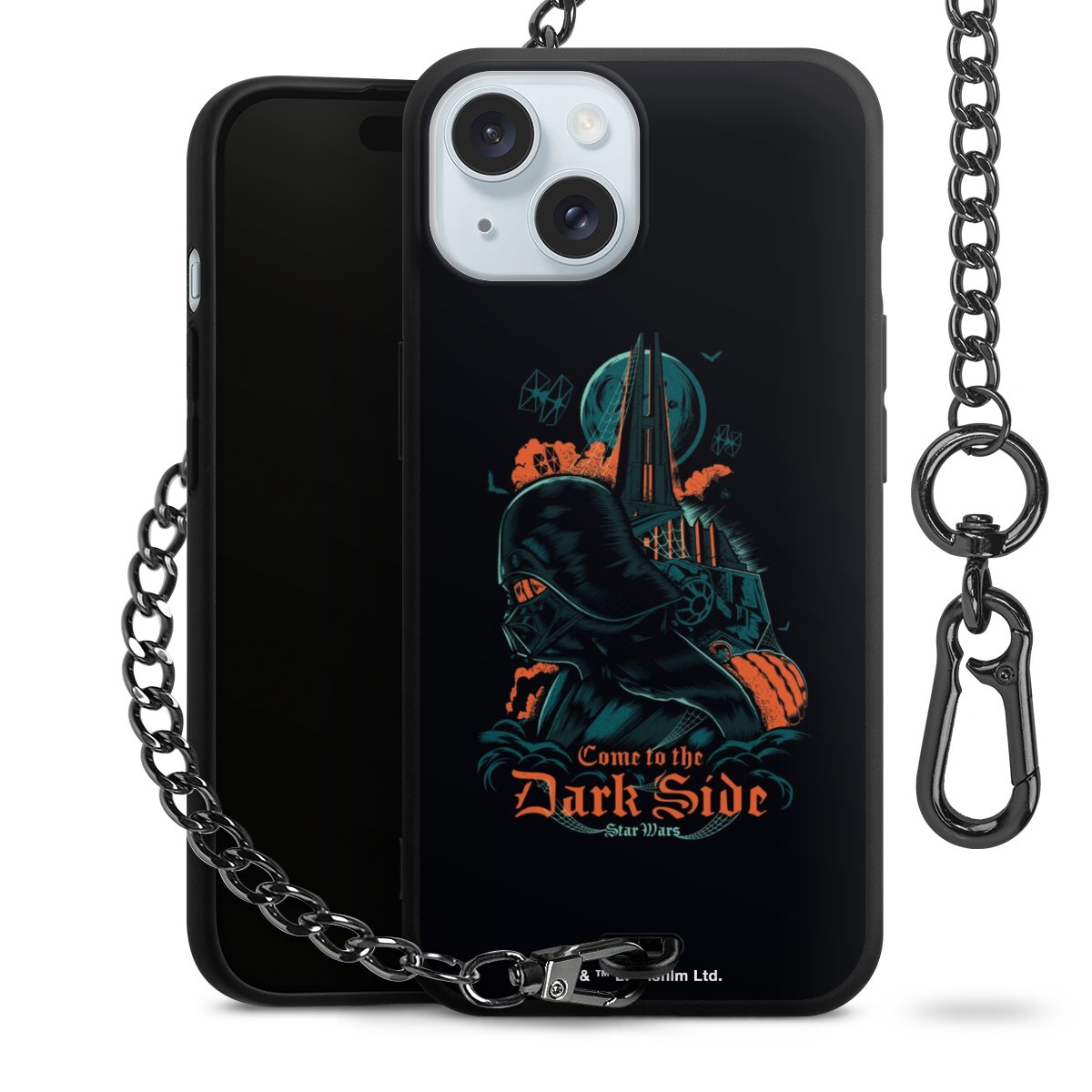 Die mattschwarze Silikon-Handyhülle besteht aus robustem TPU (thermoplastisches Polyurethan). Sie ist flexibel und schützt Dein Smartphone vor Stößen und Kratzern. Die Kette sowie der Karabinerhaken sind aus Metall in Gunmetal-Optik gefertigt. Für dieses Produkt kommen ausschließlich TÜV-geprüfte Materialien zum Einsatz.