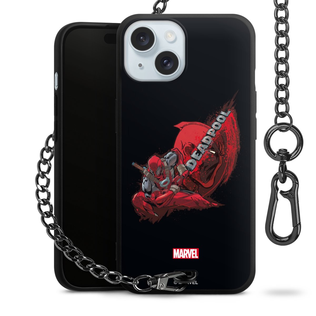 Die mattschwarze Silikon-Handyhülle besteht aus robustem TPU (thermoplastisches Polyurethan). Sie ist flexibel und schützt Dein Smartphone vor Stößen und Kratzern. Die Kette sowie der Karabinerhaken sind aus Metall in Gunmetal-Optik gefertigt. Für dieses Produkt kommen ausschließlich TÜV-geprüfte Materialien zum Einsatz.