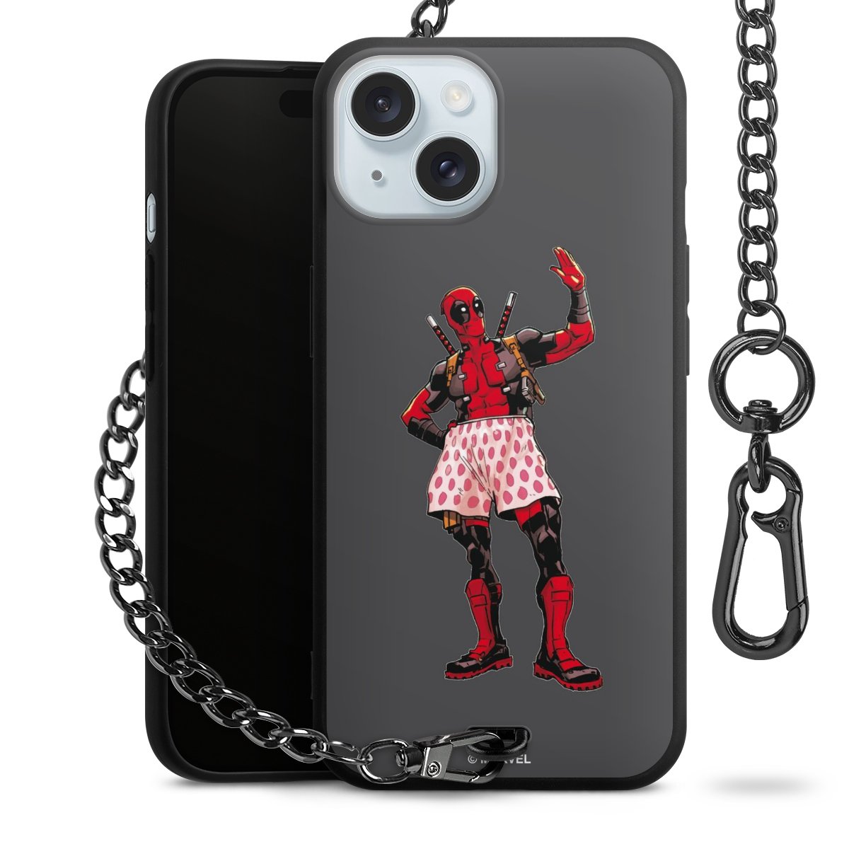 Die mattschwarze Silikon-Handyhülle besteht aus robustem TPU (thermoplastisches Polyurethan). Sie ist flexibel und schützt Dein Smartphone vor Stößen und Kratzern. Die Kette sowie der Karabinerhaken sind aus Metall in Gunmetal-Optik gefertigt. Für dieses Produkt kommen ausschließlich TÜV-geprüfte Materialien zum Einsatz.